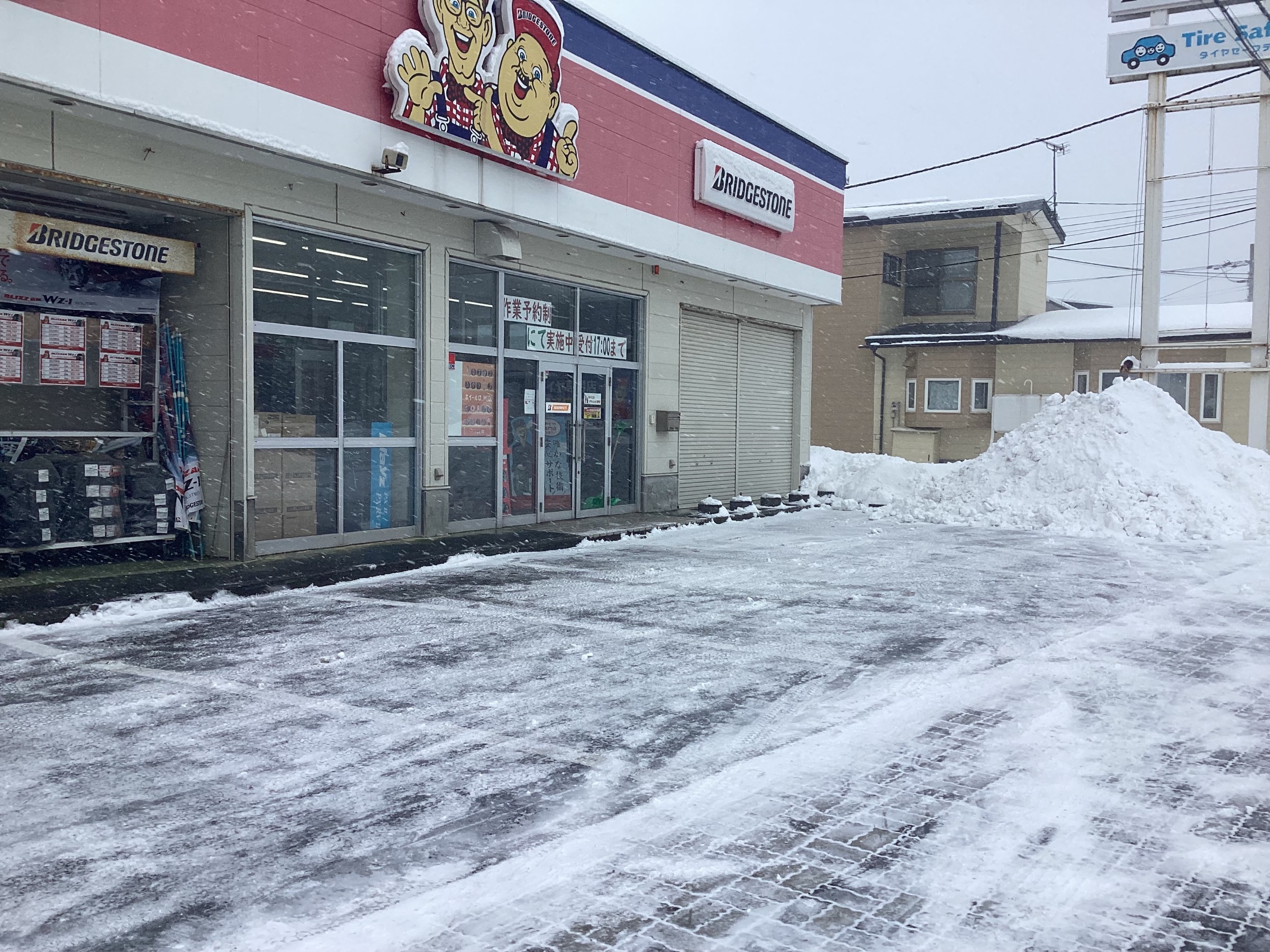 みなさん しばらくでした 2026年2月6日 今年は雪が大変な状況ですが、いかがお過ごしでしょうか。 当店は排雪が溜まってしまい、風が強い時は旗やピットのシャッターを下ろしていますが、カレンダー通り営業しております。 今日も吹雪で走りづらいですので、ご来店の際はみなさんお気を付け下さい。 駐車場はこんな感じです。