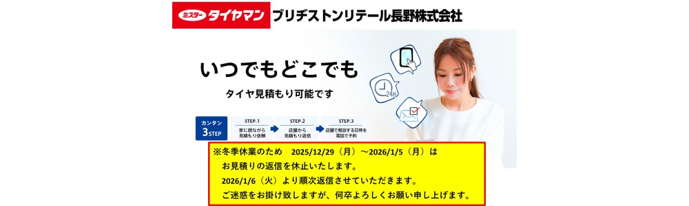 ミスタータイヤマン長野東店のインフォメーションサイトへようこそ!