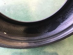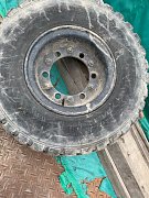 フォークリフトのタイヤではメジャーな合わせホイールです。 タイヤの裏、表のホイールをボルトとナットで締め付けてあります。