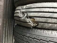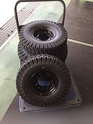 荷物を、載せたりおろしたりする車-------------フォークリフト! そんな車にも、スノータイヤがあります。