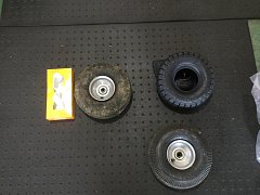 皆様いつもご覧頂きありがとうございます。 本日は、薪割り機に付いている超ミニサイズのタイヤ交換です('ω')ノ