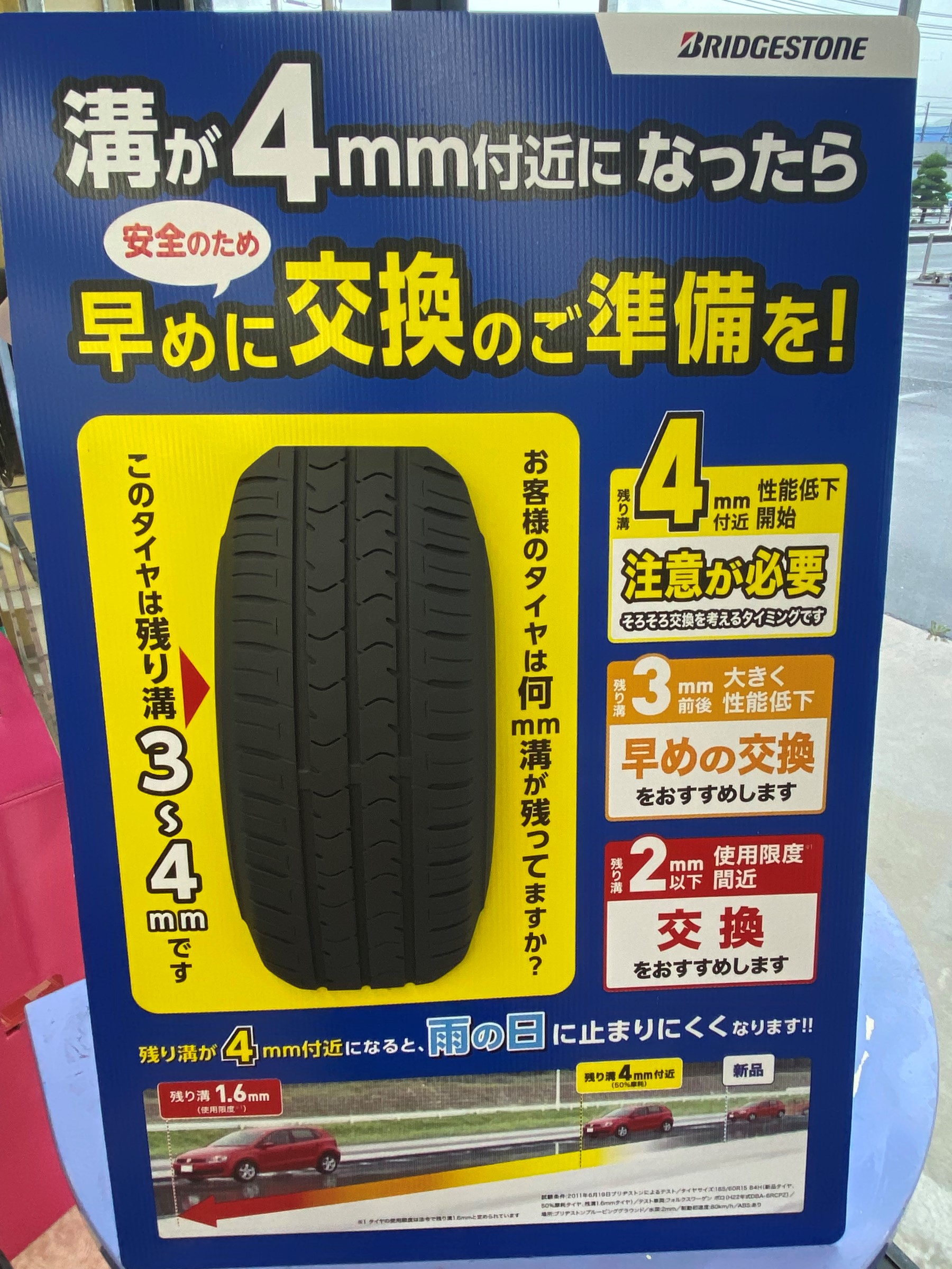 店内に置いているPOPなんですがタイヤの溝の変化でここまで変わってきます