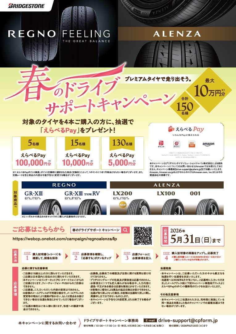只今、プレミアム商品対象「春のドライブサポートキャンペーン」開催中!
