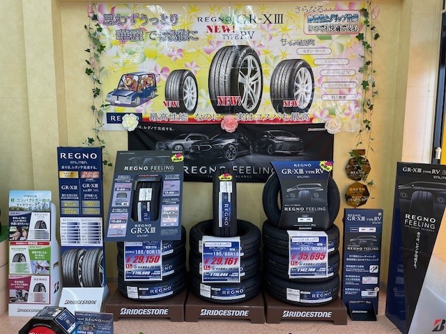 ☆新商品登場☆ 2025年2月12日 皆さん、こんにちは! ブリヂストンタイヤのTOPブランド「REGNO」が新しくなりました。 今回、新たにミニバン、コンパクトSUV用「REGNO type RV」が新商品として登場! そして、今までの「REGNO-XⅢ」が、さらに進化!タイヤサイズ拡充! この機会に是非「REGNO」を体感してみてはいかがでしょうか? ※旧モデルについては在庫限りとなります。※ 詳しくは店頭にて! お客様の車に合ったタイヤをご提案させていただきます。