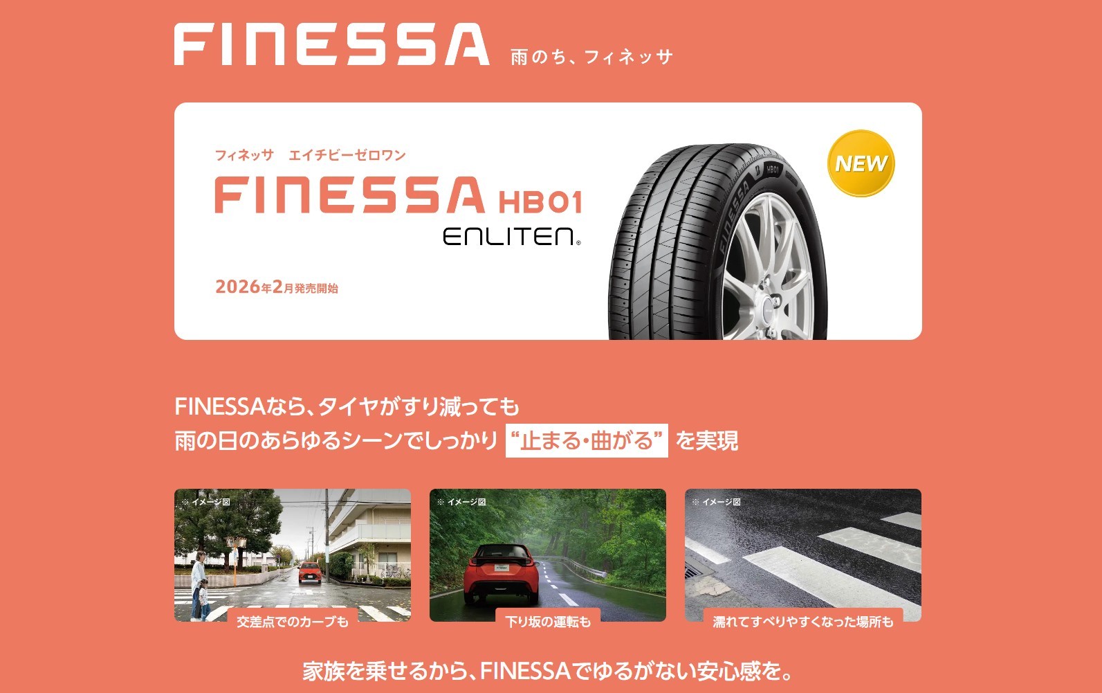 FINESSAなら、タイヤがすり減っても雨の日のあらゆるシーンで しっかり“止まる・曲がる”を実現
