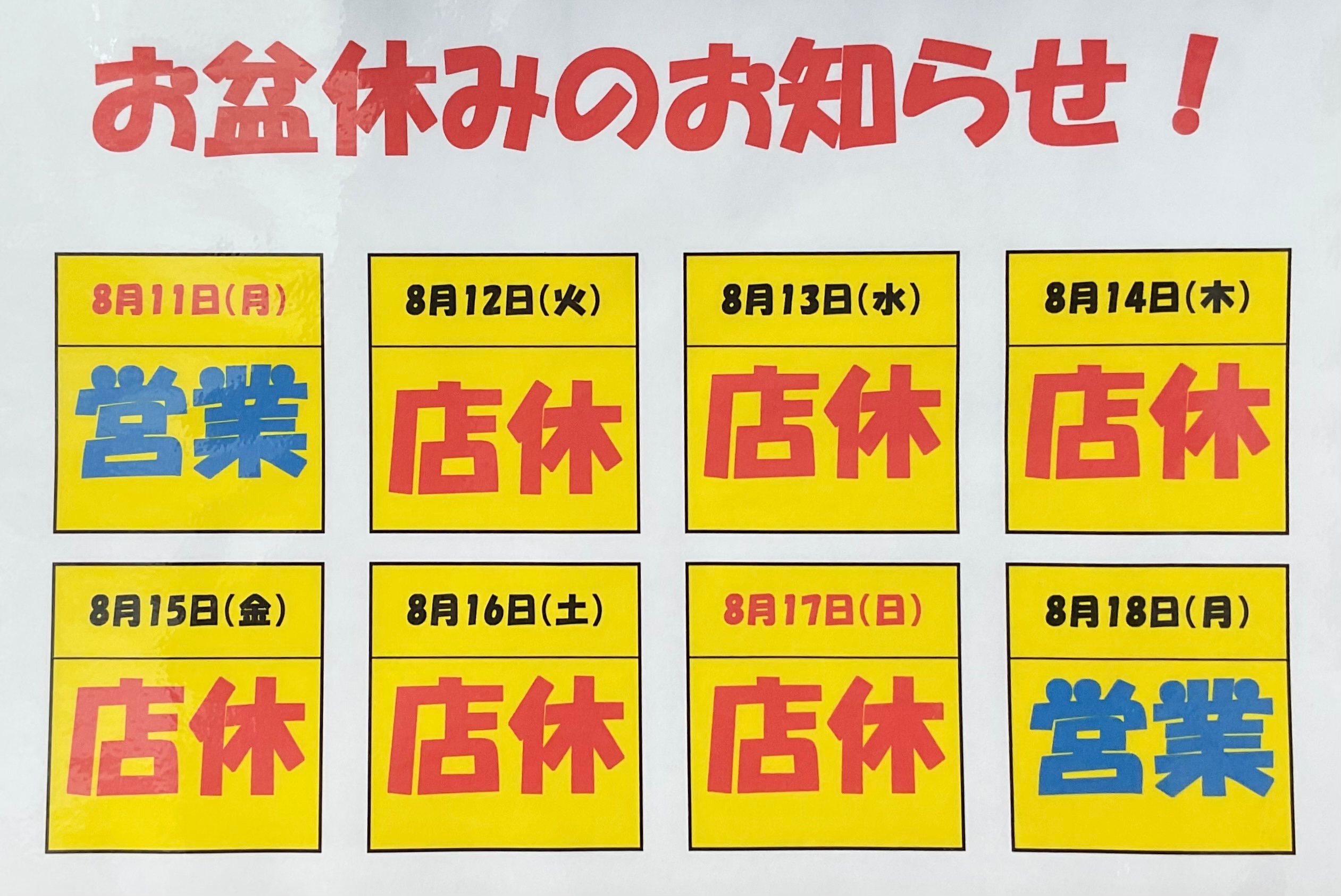 誠に勝手ながら、下記期間はお休みとさせて頂きます。