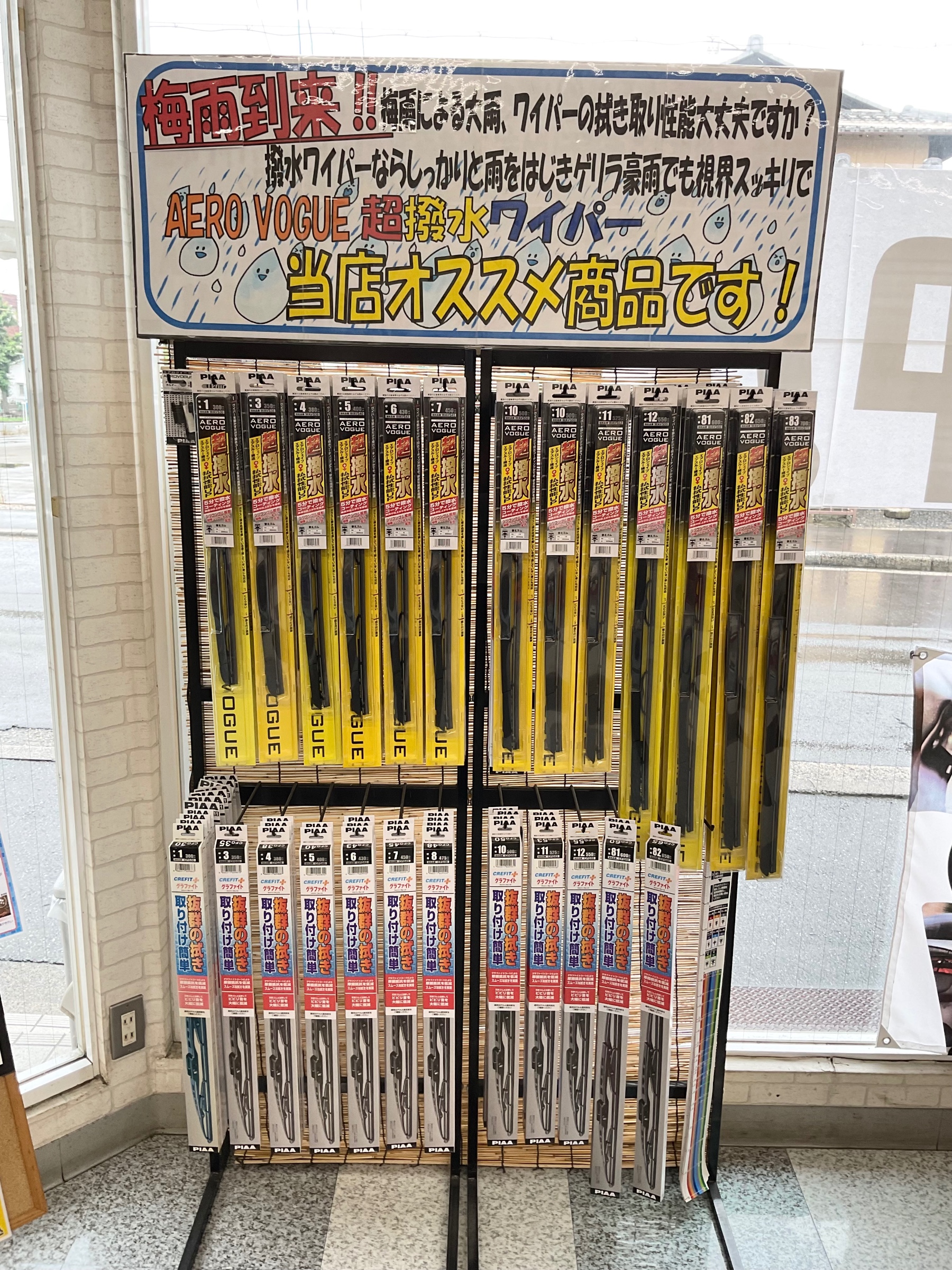 こちらの商品、ワイパーを動かすだけでガラス上に撥水コーティングが勝手にされるスグレモノです。 撥水とは水を弾いてくれることなので、常に視界が良好になります! ワイパー交換の際はちょっと良い性能のこちらの商品おススメです。