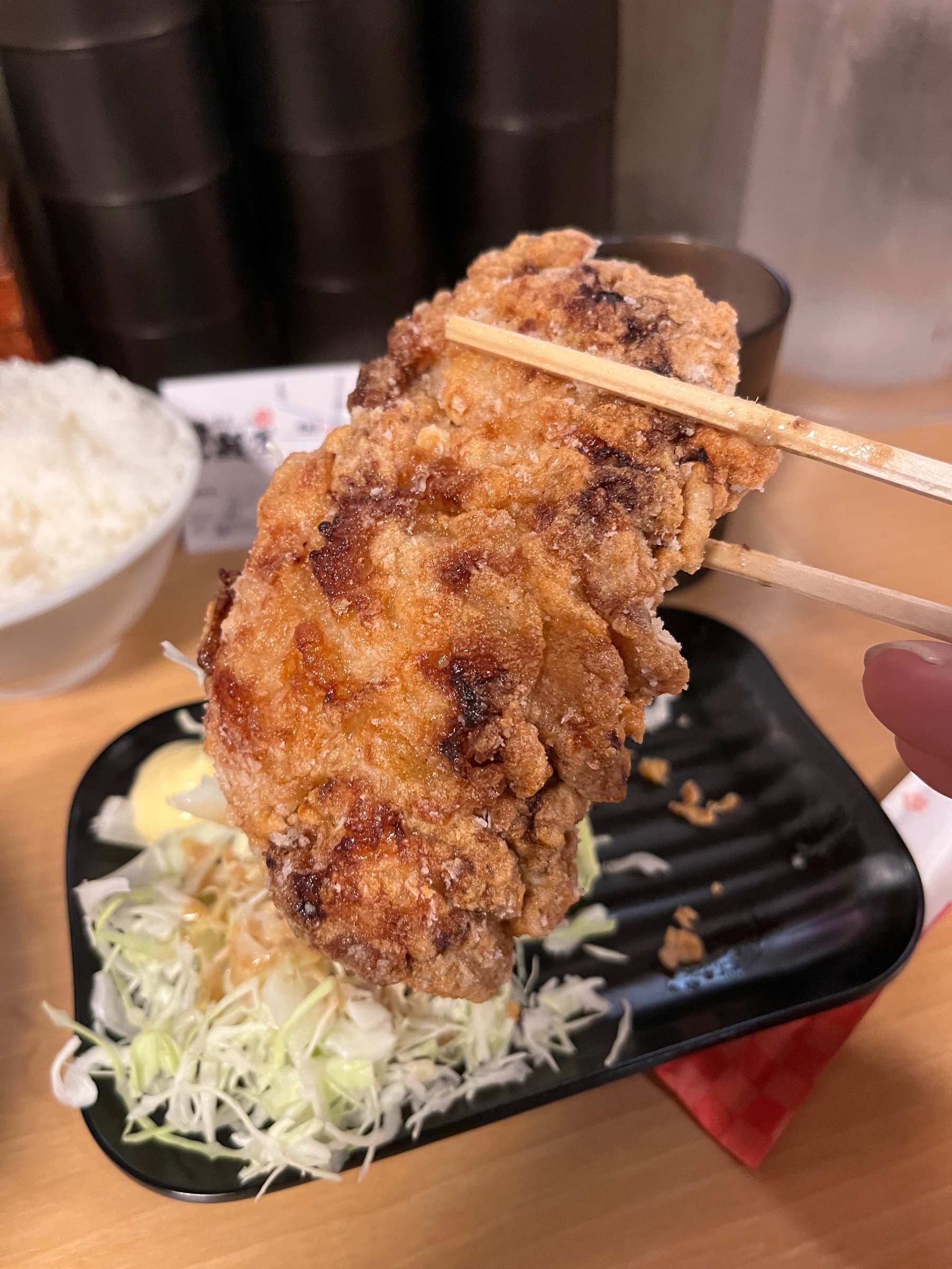唐揚げは、とても大きく重みもある(゚∀゚)