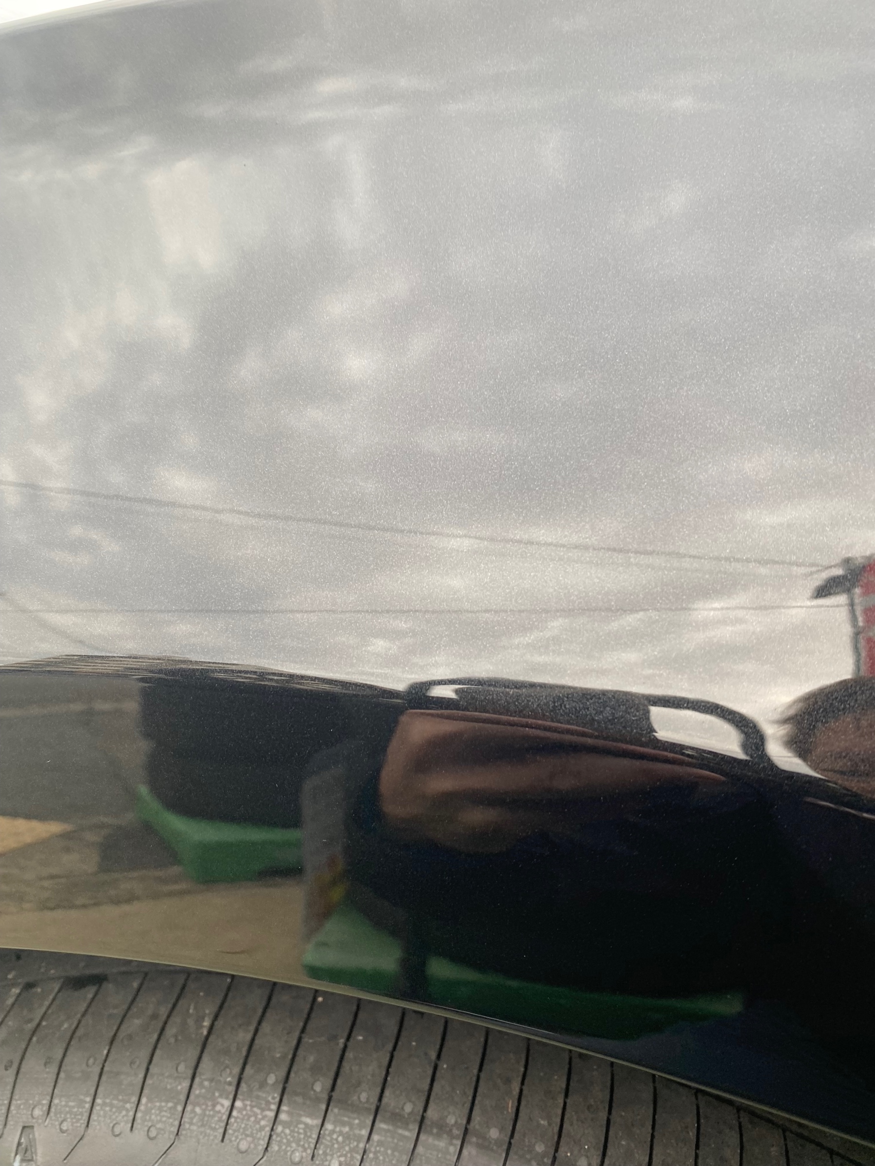 ボディー全体にこのような雨ジミが付着してます。ポリッシャーで磨いてとっていきす。