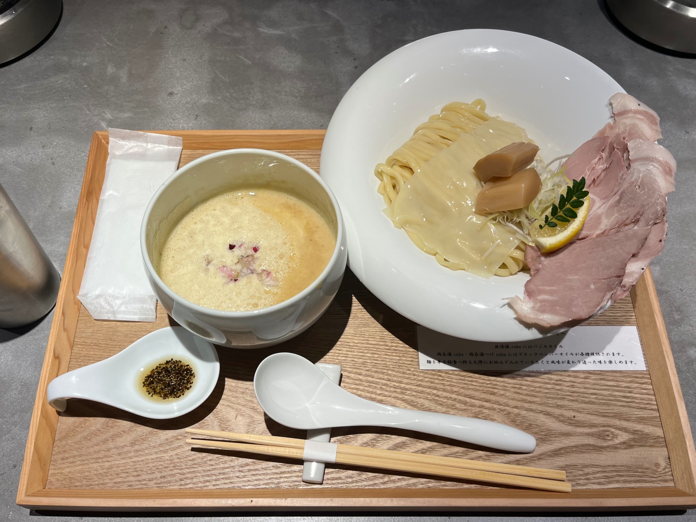 行く前から決めていました「鶏白湯つけsobaとチャーシューユッケ丼」を注文ψ(`∇´)ψ
