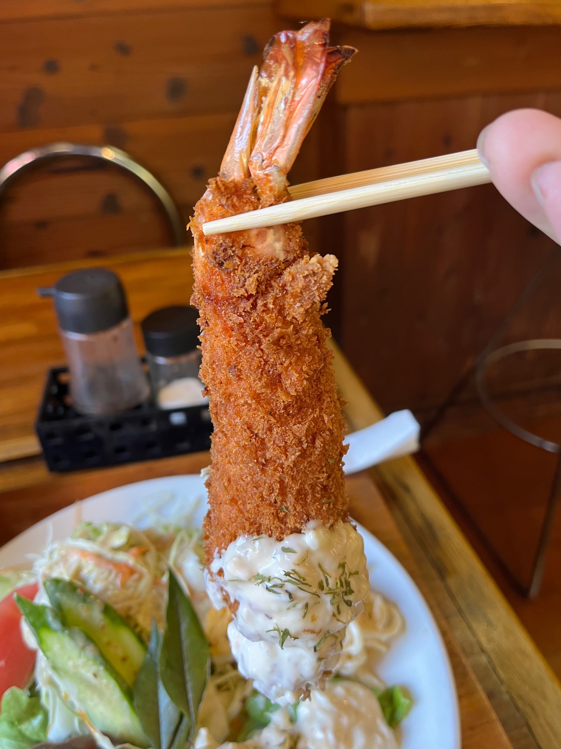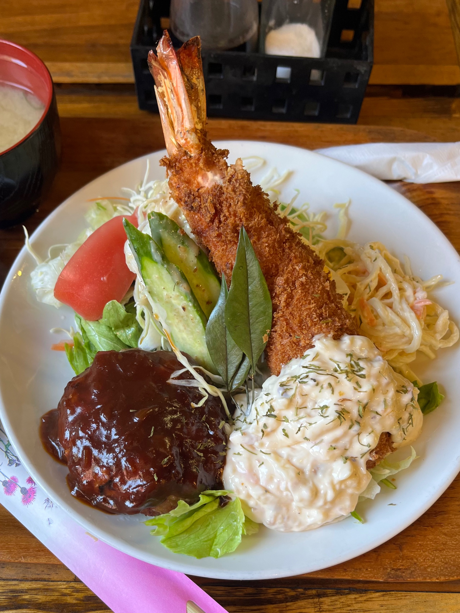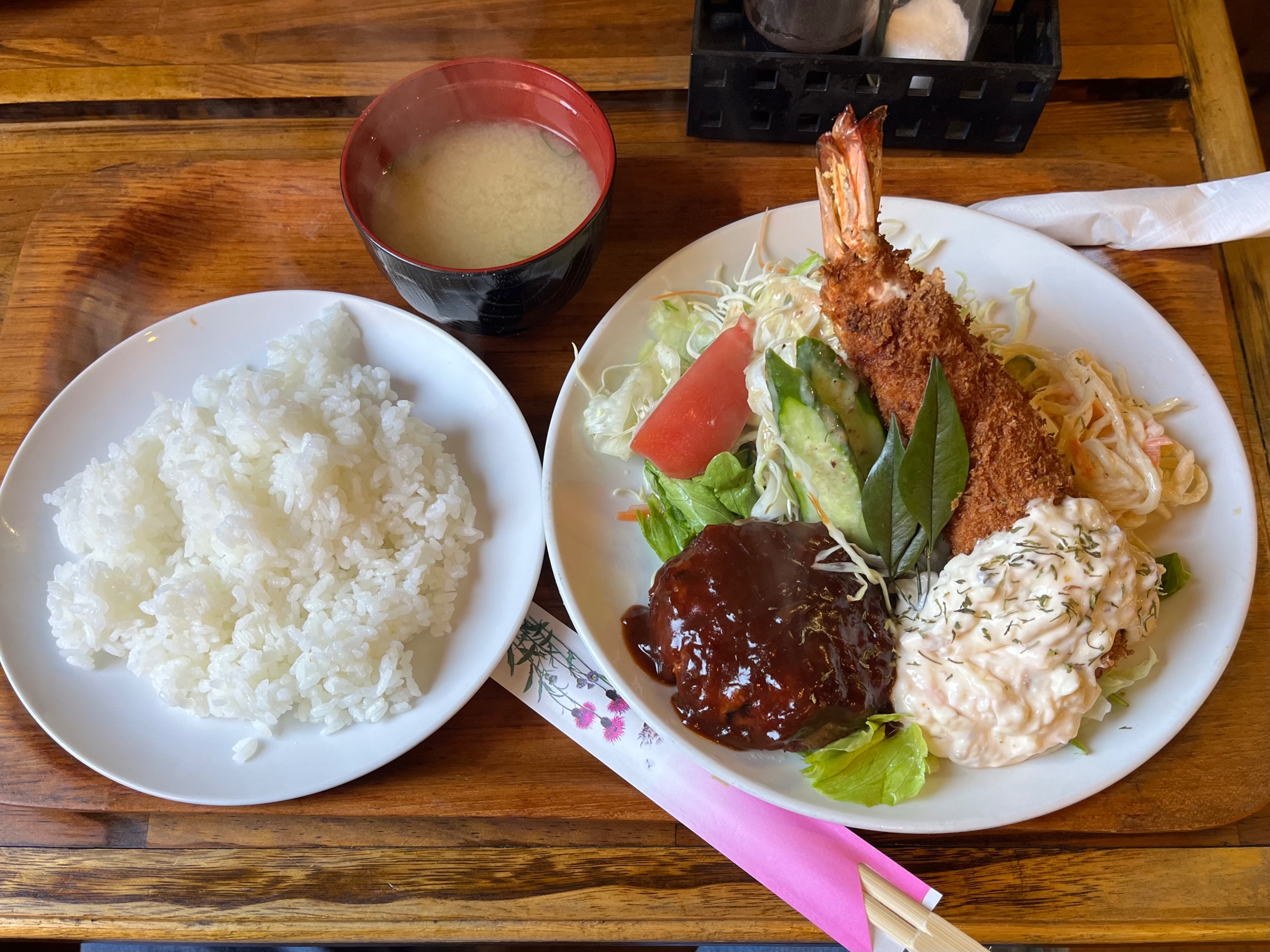 注文は、巨大エビフライのハンバーグ定食(C定食)ψ(`∇´)ψ