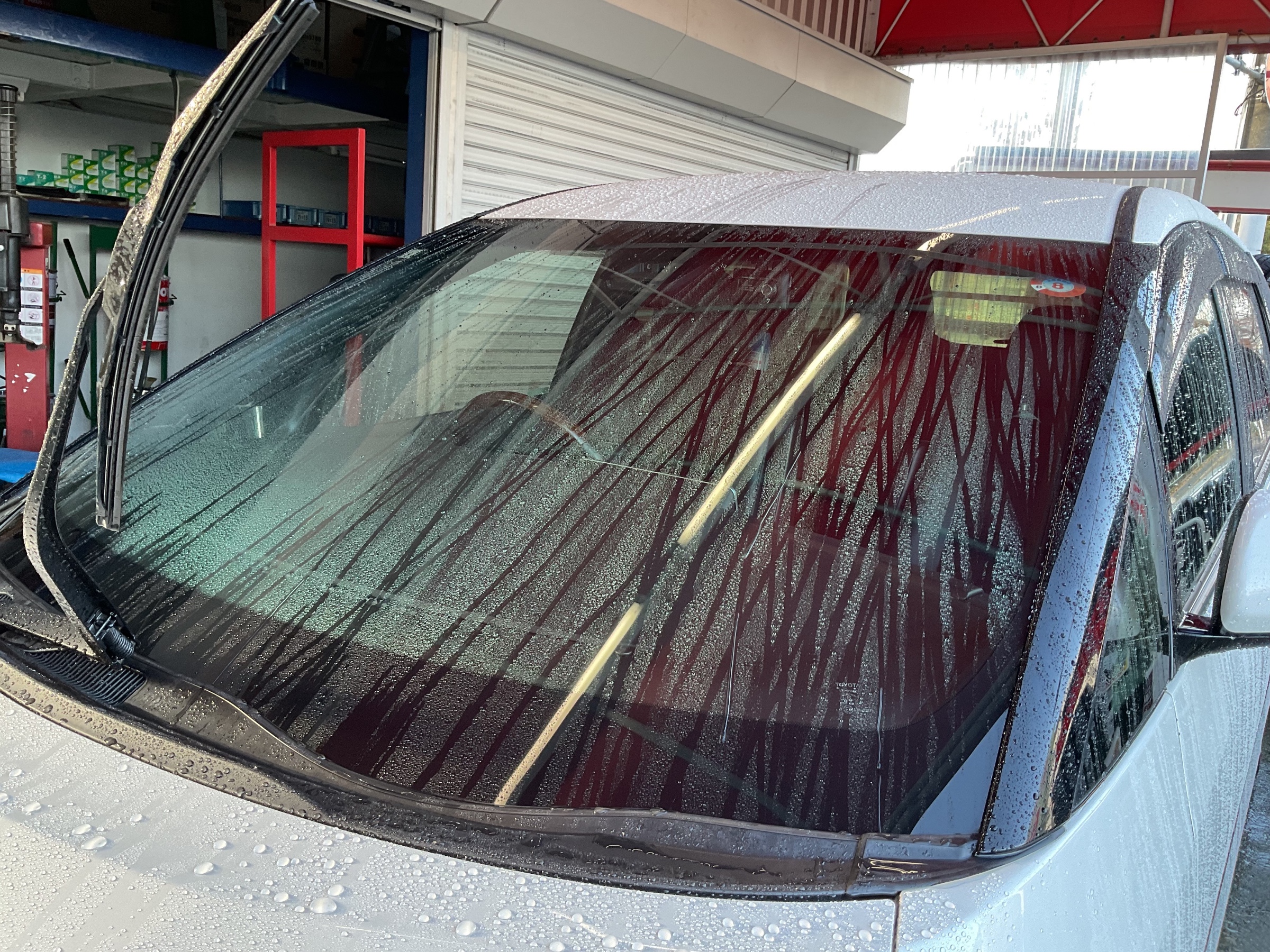 フロントガラス面の油膜取りしてコーティング材で視界バッチリ(^ν^)