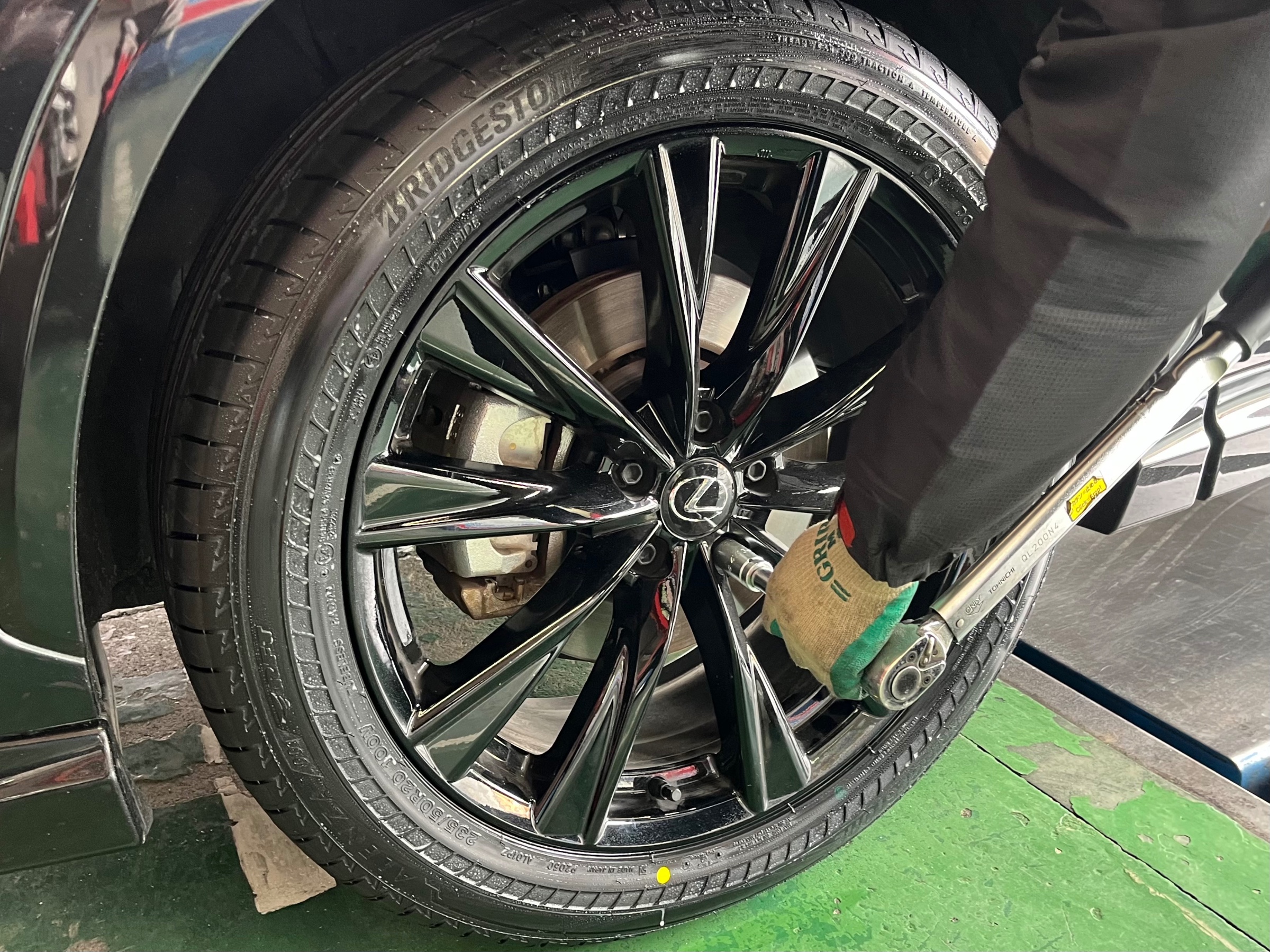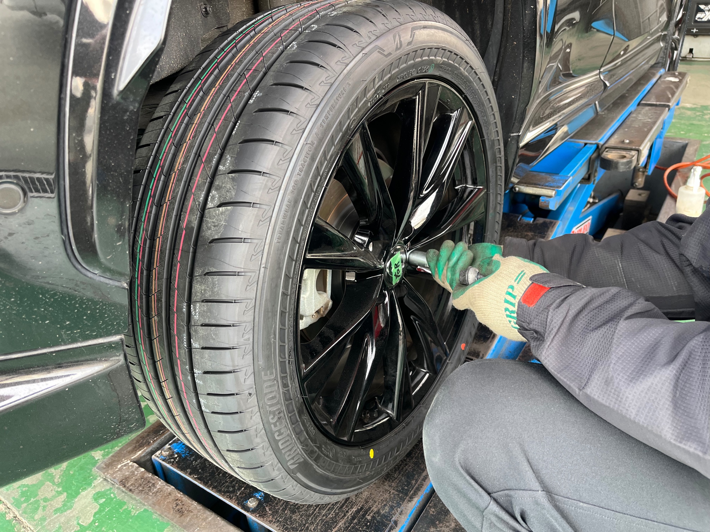レクサスNX350hでご来店の南区K様、現在装着しているタイヤの残り溝が薄くなって、この度タイヤ4本(BRIDGESTONE ALENZA LX100 RFT 235/50R2O)をご購入して頂けました(^O^)