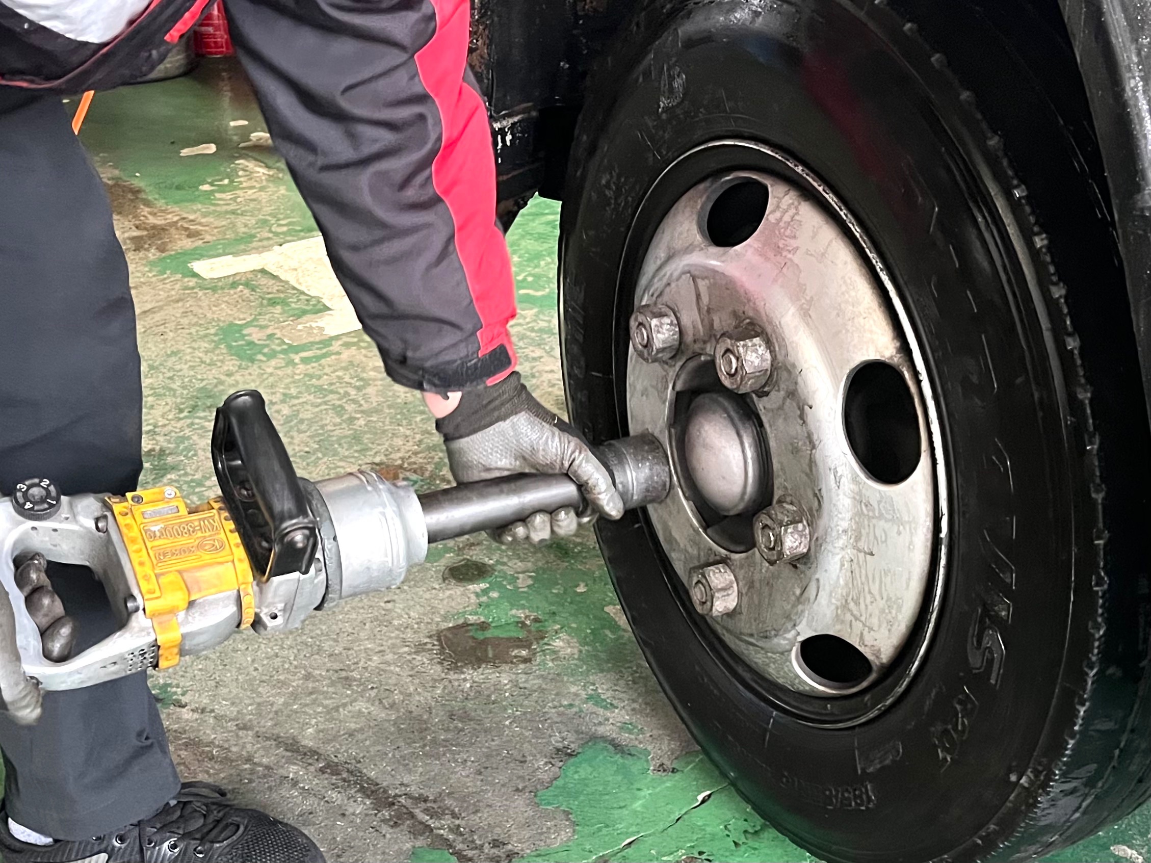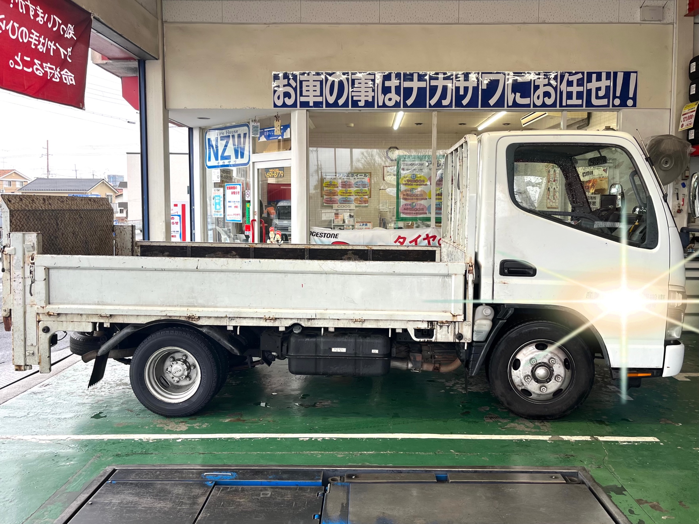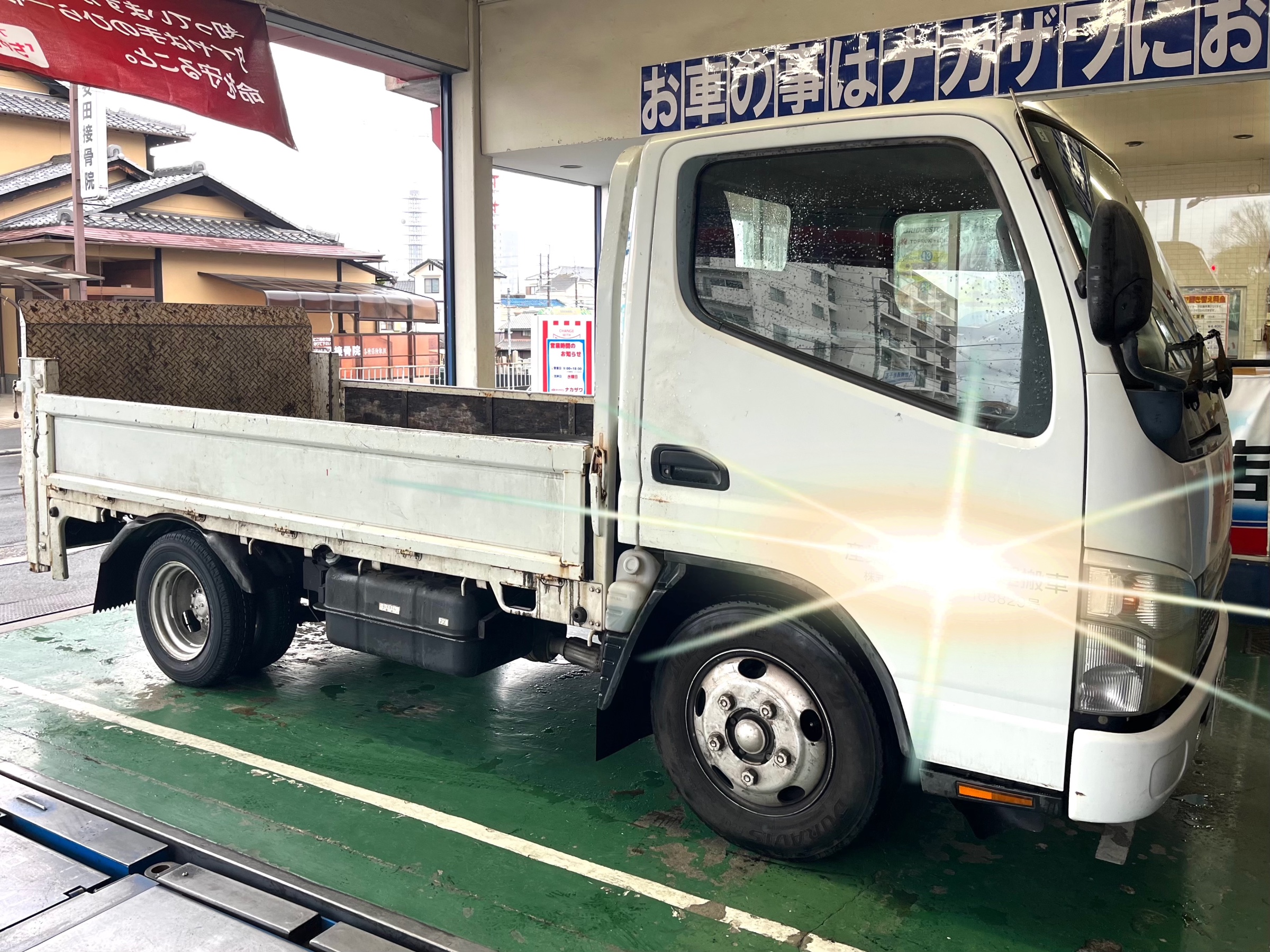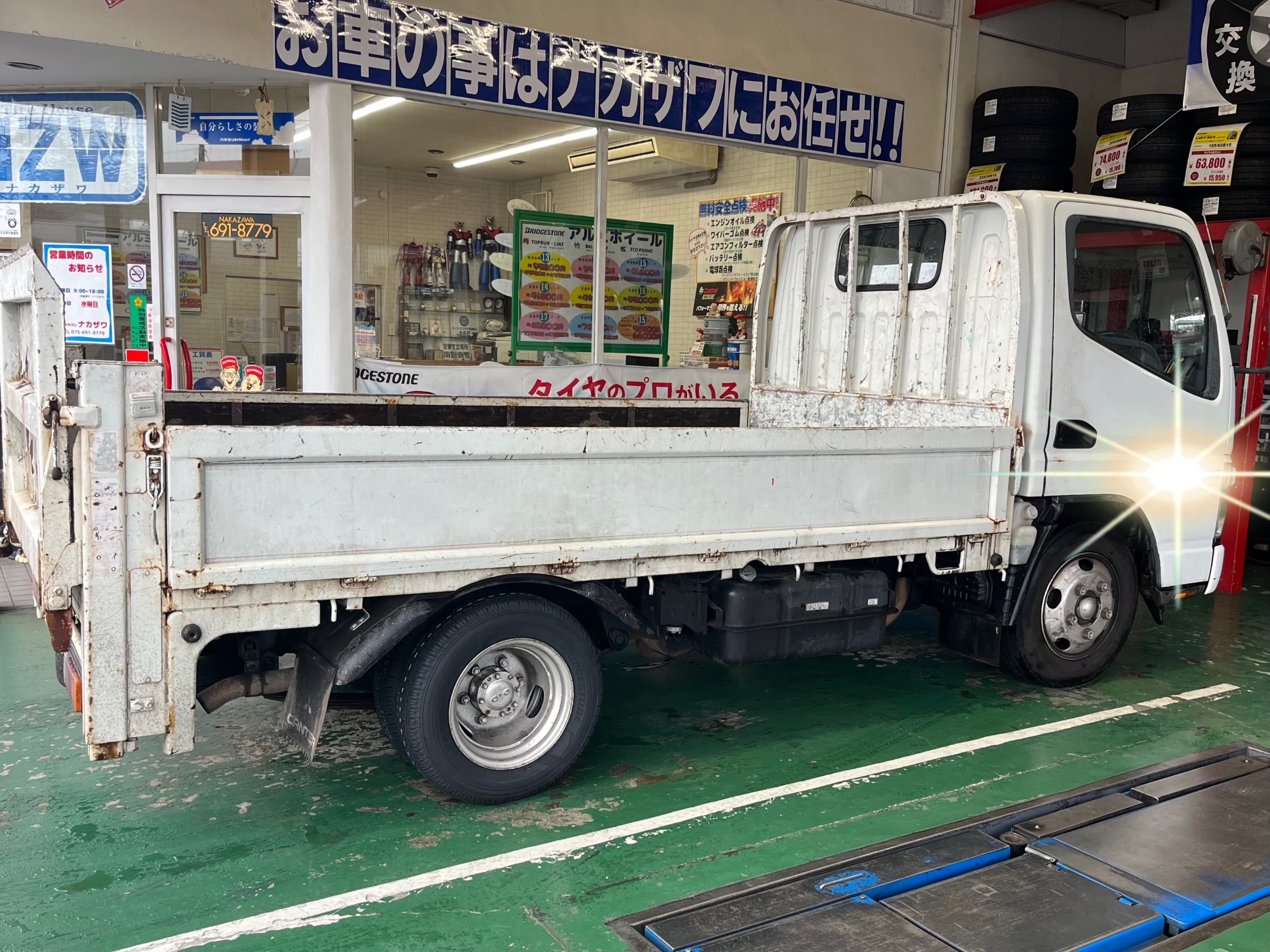 本日は、当店近所のお得意先S様が、キャンターの冬タイヤから夏タイヤ交換作業でご来店٩( 'ω' )و
