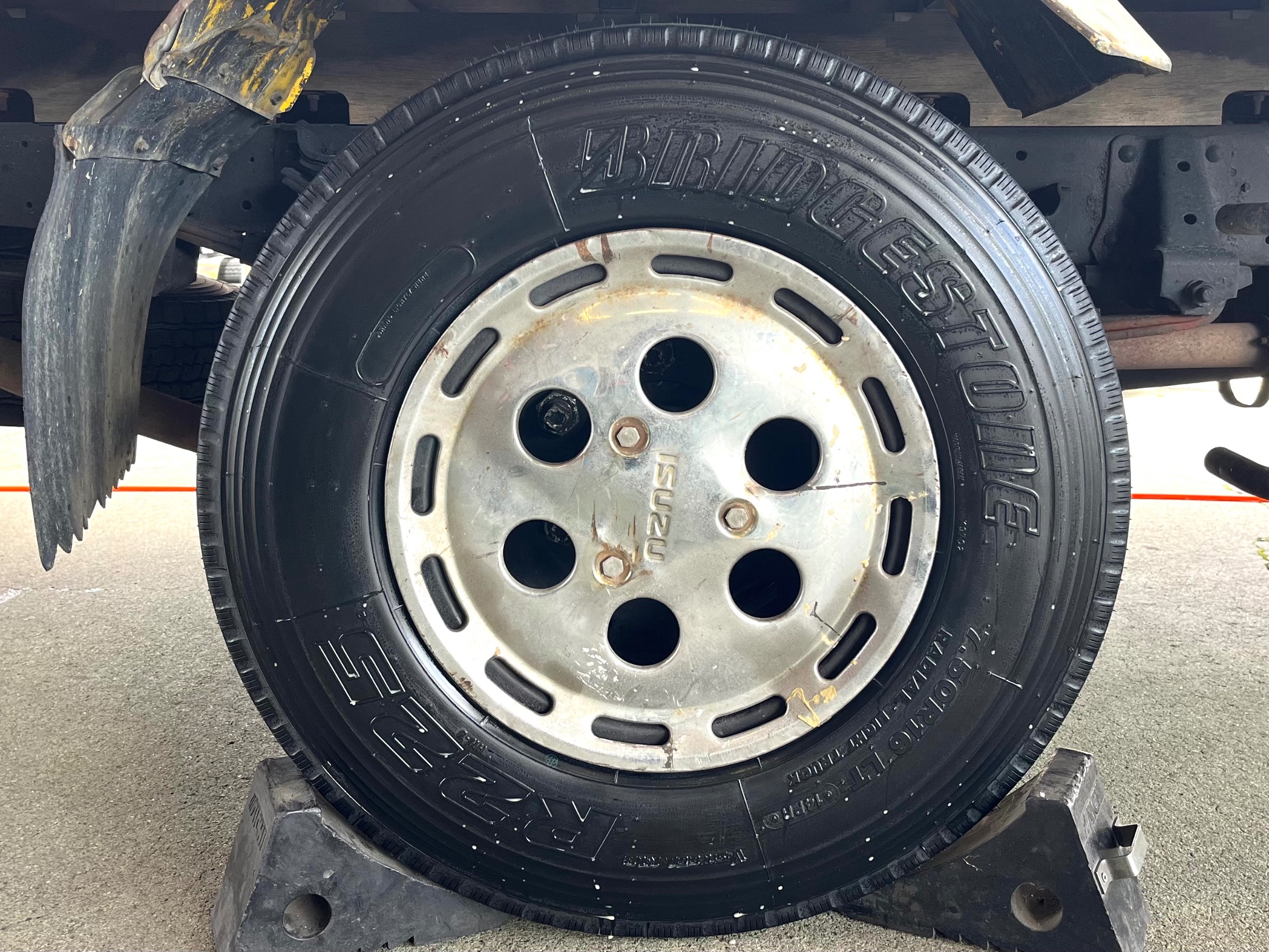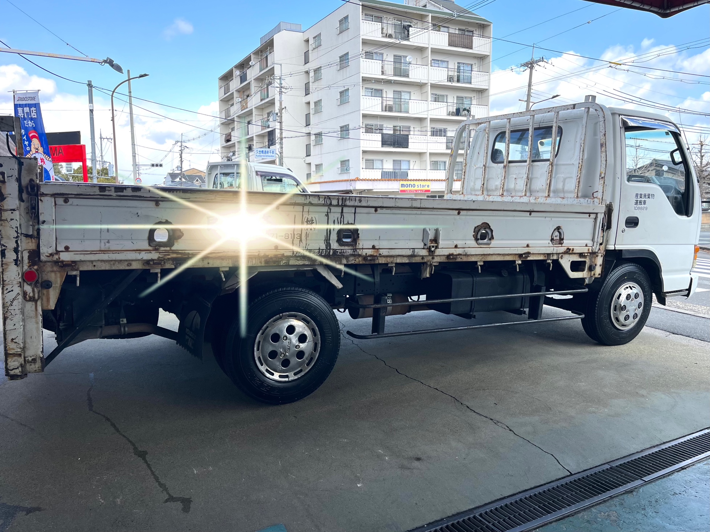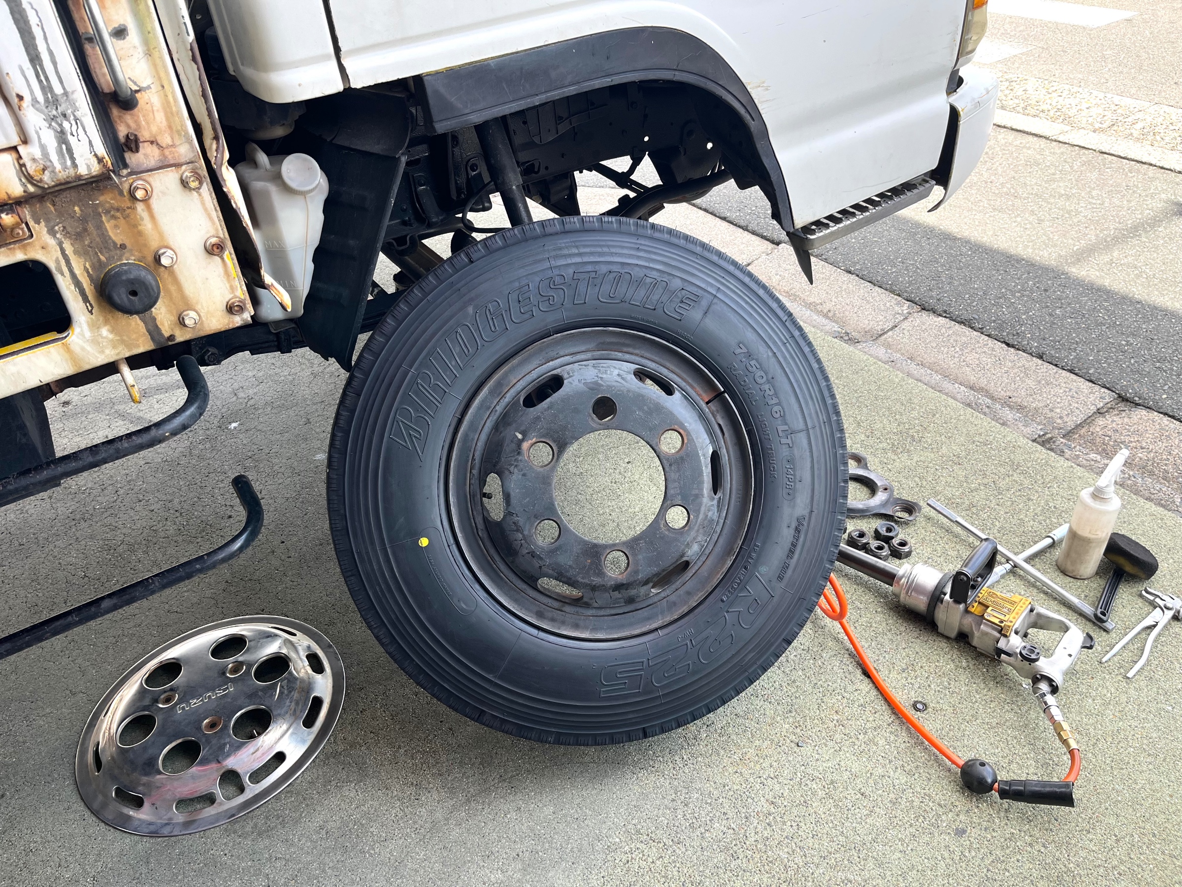 当店近隣のお得意先S様、本日はエルフ4tのタイヤ交換でご来店して頂きました(^O^)