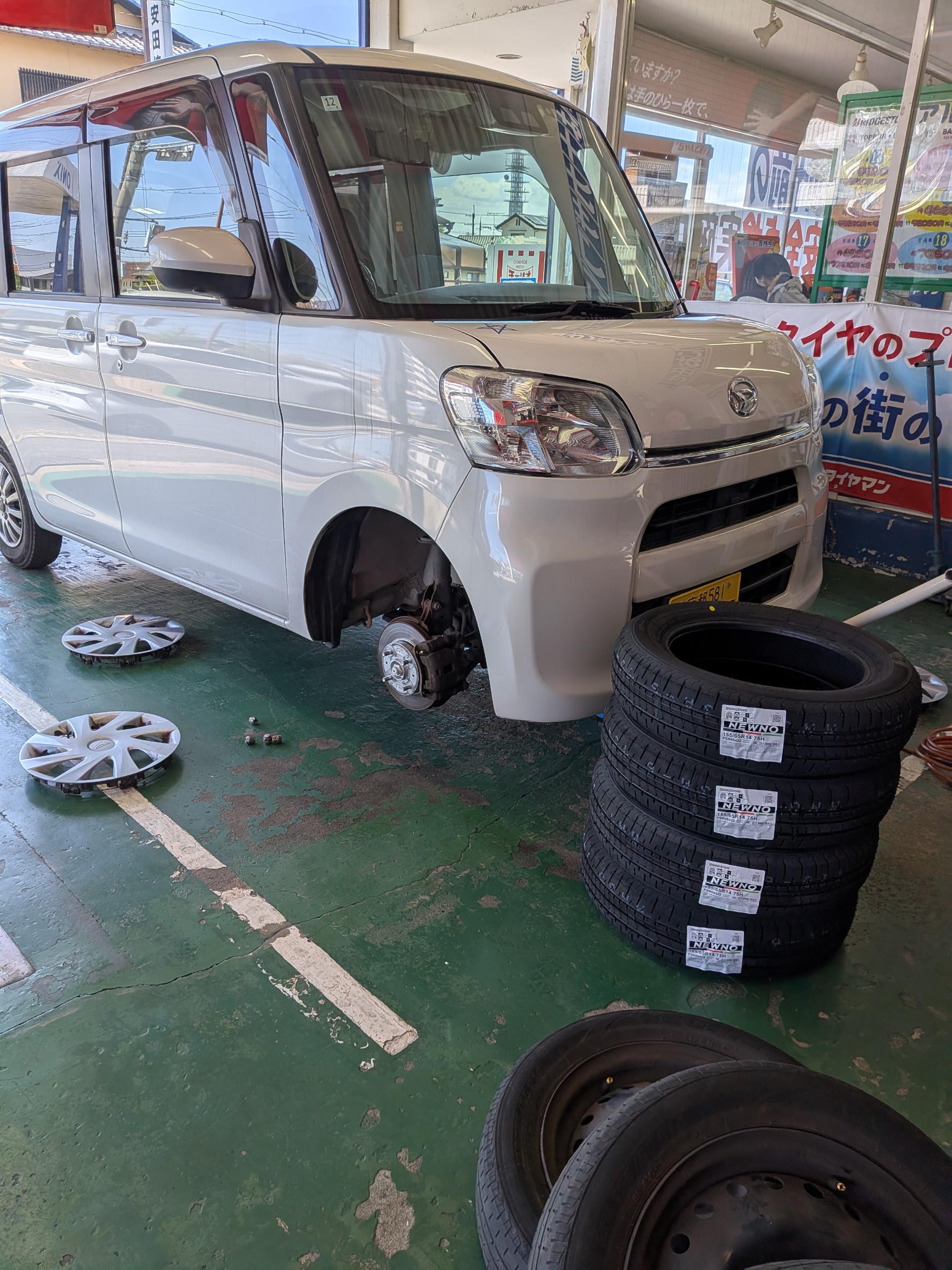 近所の買い物ぐらいしか乗らない車両らしく、製造年数の古いタイヤが付いてました。