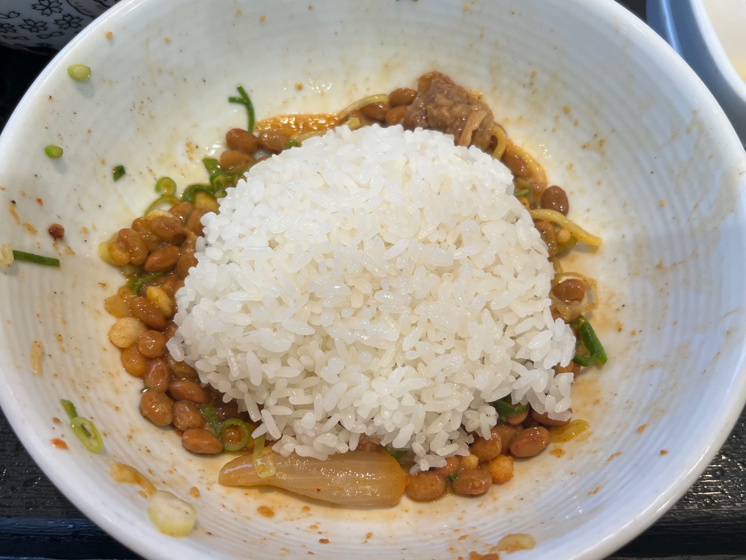 更に余ったタレと納豆のところに、ご飯(別料金)をダイブψ(`∇´)ψTHA締め飯!