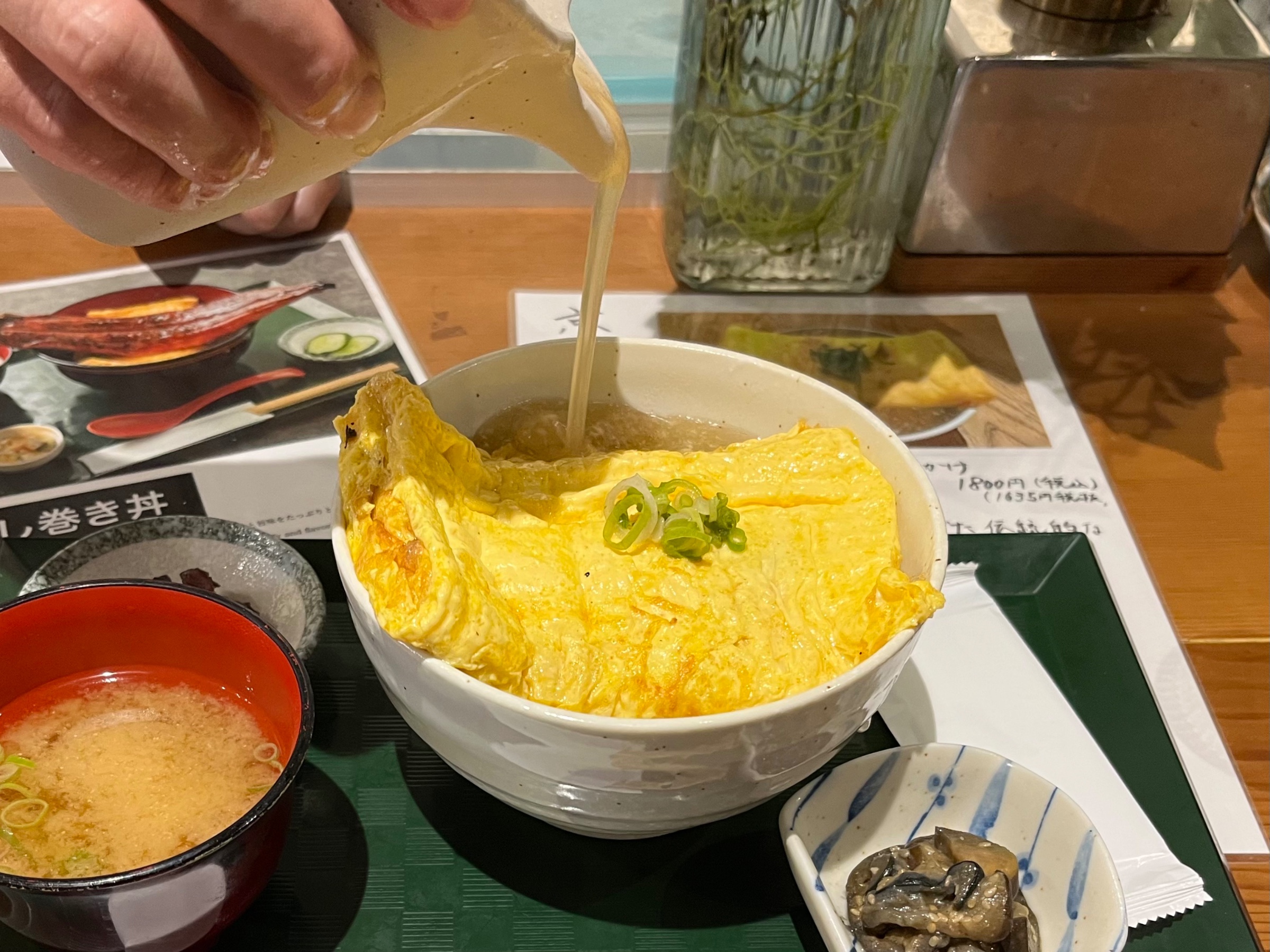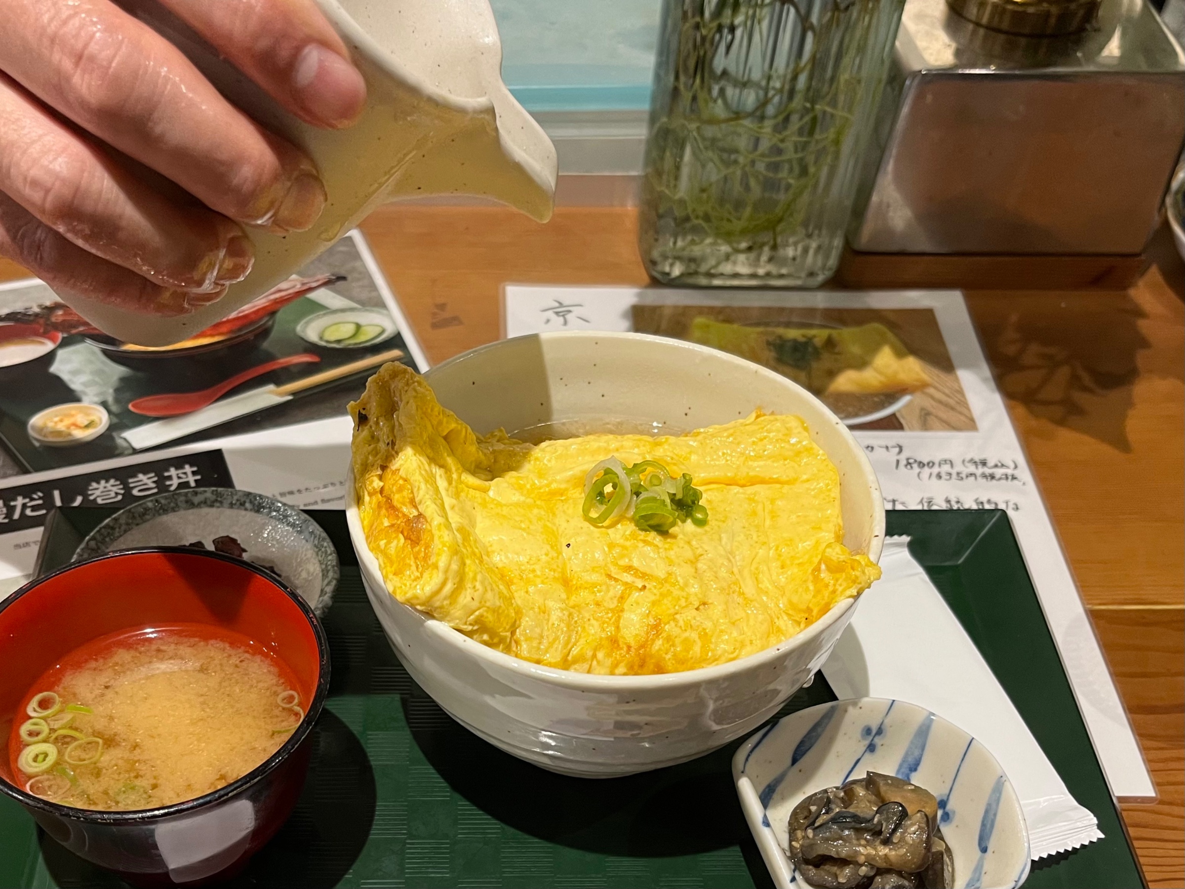 ↕️出来たての京だし巻丼に餡を店主がかけてくれます。
