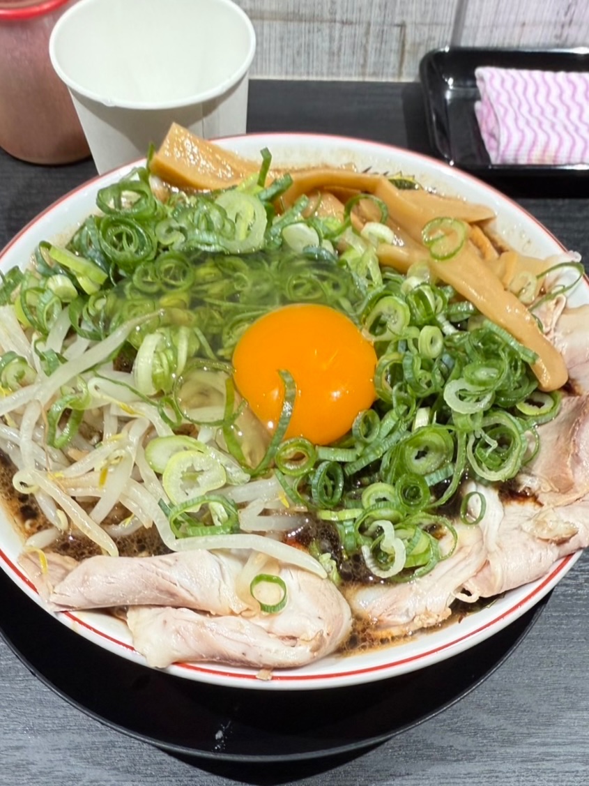 でっ、本題の中華そばですが「背脂ブラック中華そば」を全部のせ(別料金)で頂くψ(`∇´)ψ