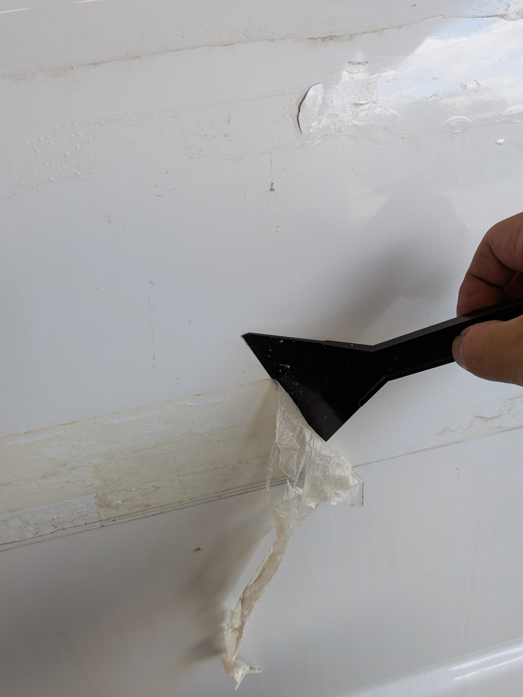 看板剥がし、両面テープ除去、洗車仕上げ