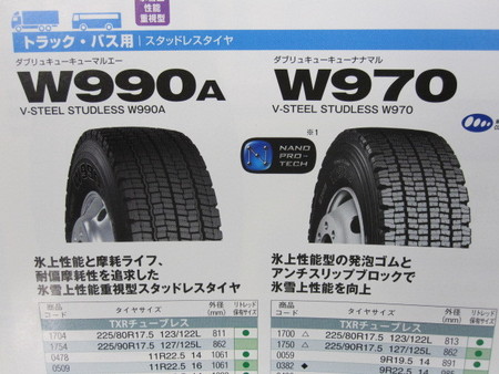 トラックやバス等のスタッドレスは、もう注文受付が始まってるんですよ