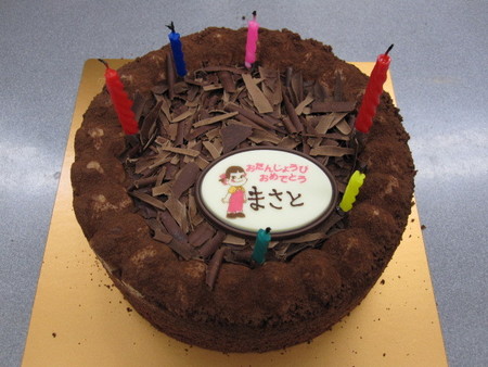 ペコちゃんでチョコケーキを買ってきて祝ってあげました とさ