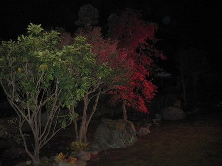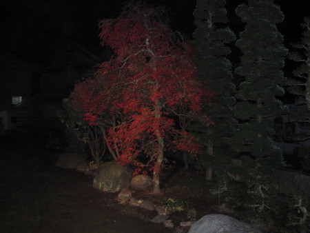 夜見ると1本だけが紅葉してるように見えますが・・