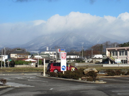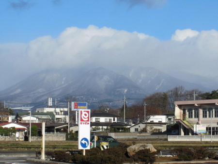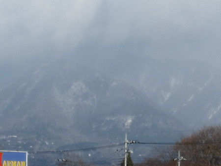 今朝、出勤途中に白く薄化粧した那須山ッ