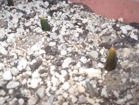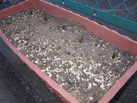 昨年10月に私と保ちゃん(バイト)で植えた球根(大ヒント)です