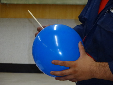 そのほか、受講者全員が風船に針や割り箸を刺したり・・・