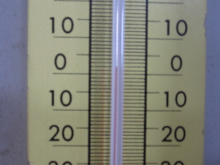 一枚目の画像:ピット奥のストーブのそばに置いてある温度計 2度ッ