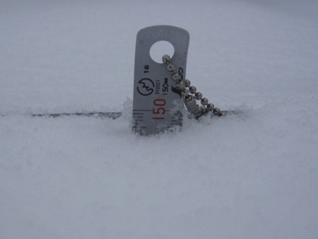 二枚目の画像:駐車場の積雪量、15cmでーすッ