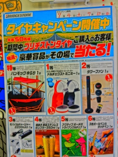 タイヤ4本お買い求めいただいたお客様には豪華商品がその場で当たるクジが引けますよッ