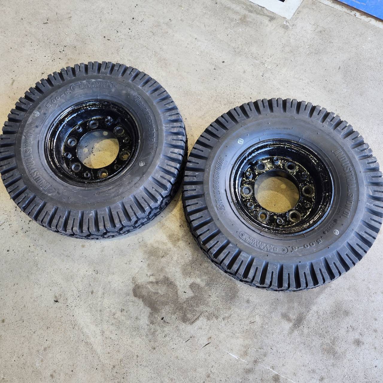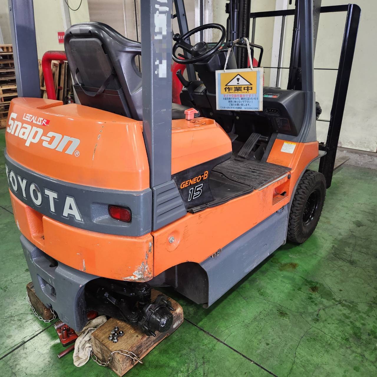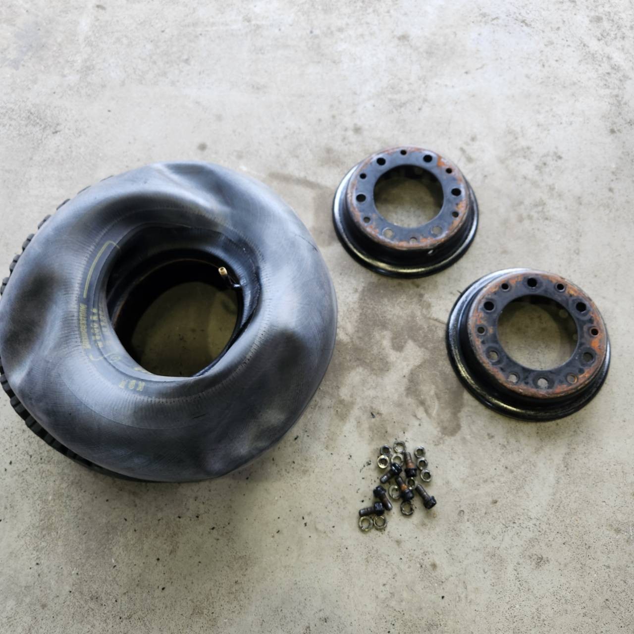 さて、今日の作業はフォークリフトのリアタイヤを新品に交換します。