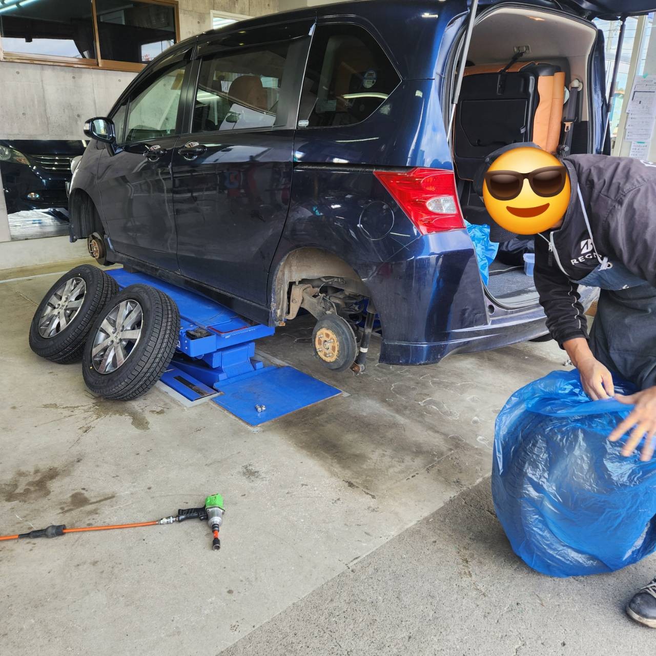 今日の作業は、タイヤ交換の予約がたくさん入っていて