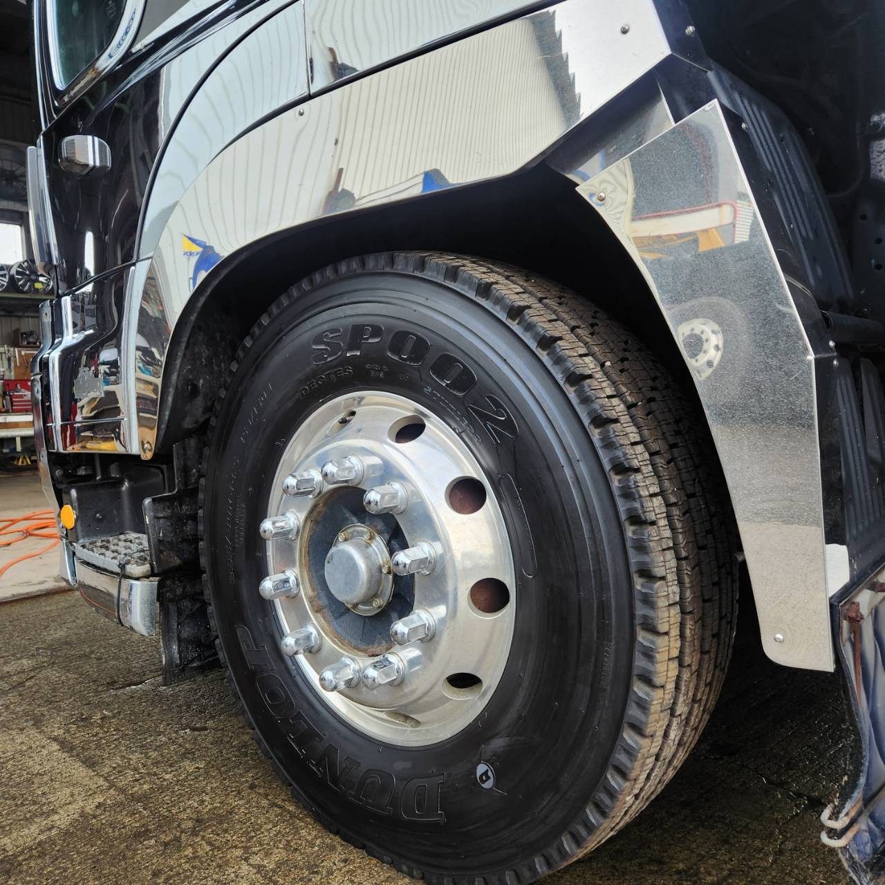 オイル交換が終わってから大型トラックのタイヤ交換作業でーす!