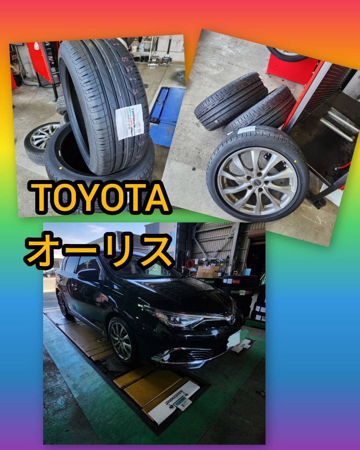 さて今日の作業は、オーリスに新品タイヤ入替えをしました。