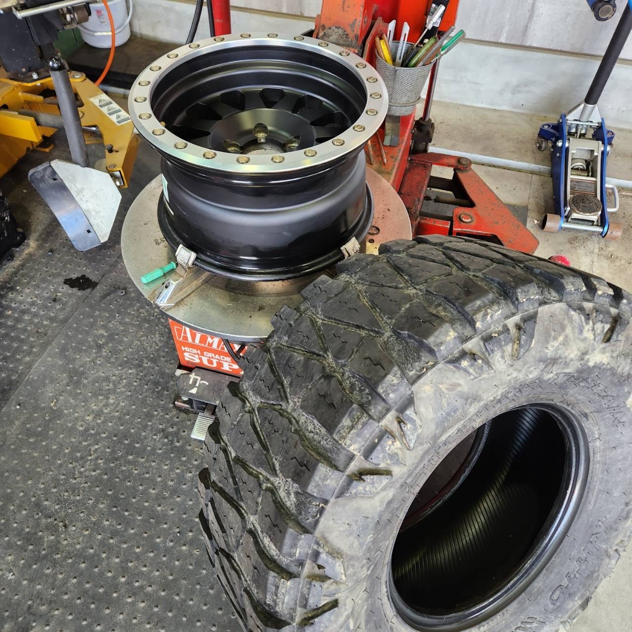 タイヤはお客様の持ち込みで、めちゃめちゃ重たいです(^_^;)
