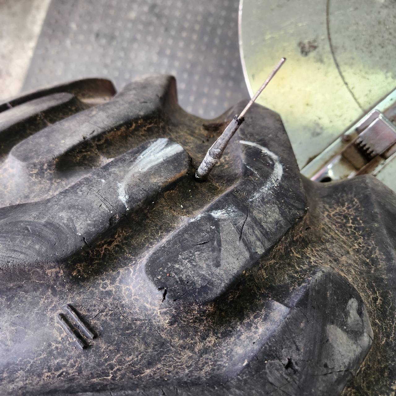 原因はネジが刺さっていて少しずつエアー漏れしていました(^_^;)