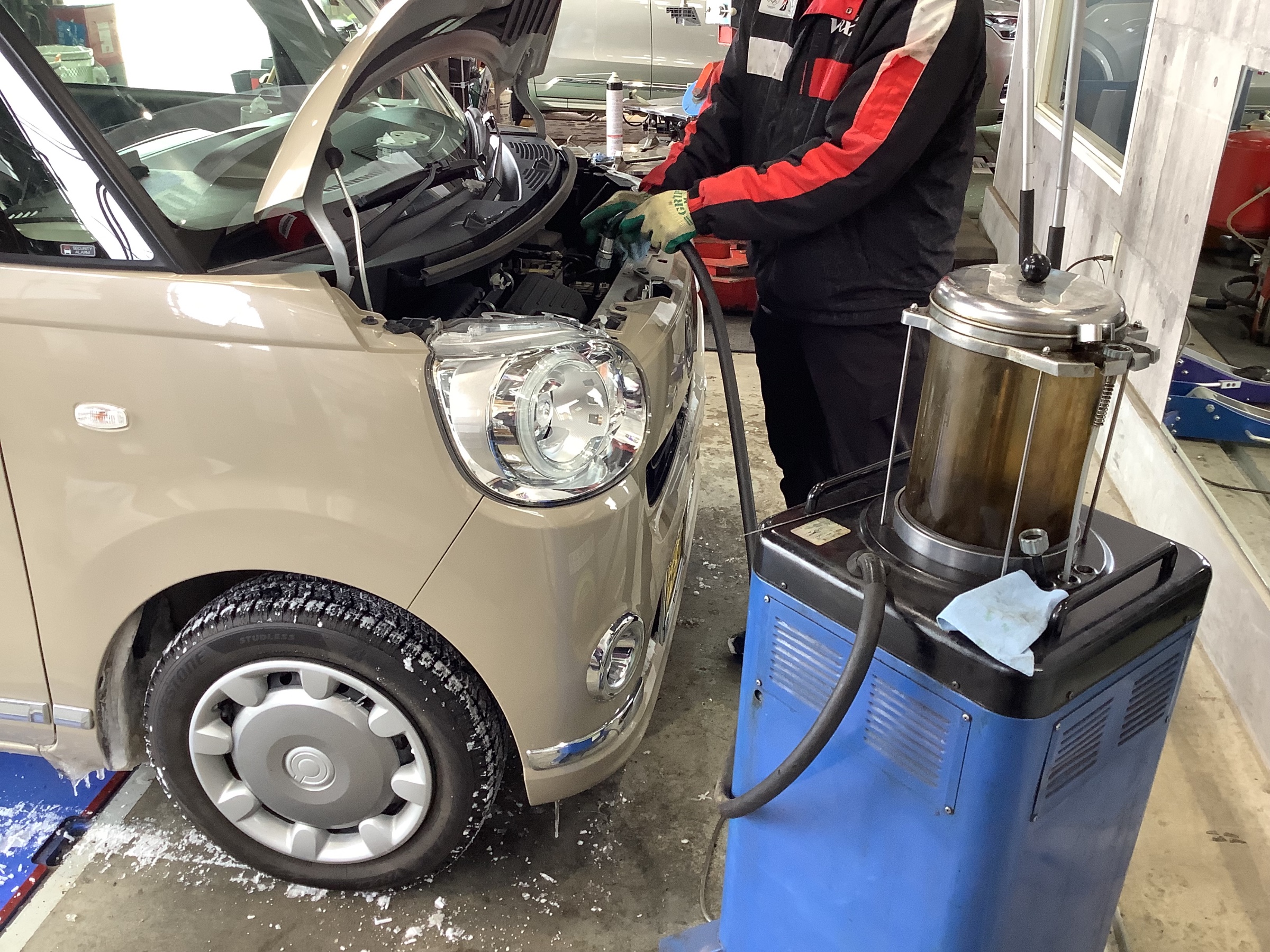 本日は【ダイハツ/ムーヴキャンバス】のオイル交換を行いました!
