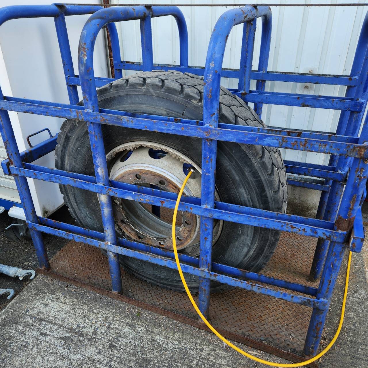 当たり前ですが、安全のために防護柵に入れてエアーを充填します!