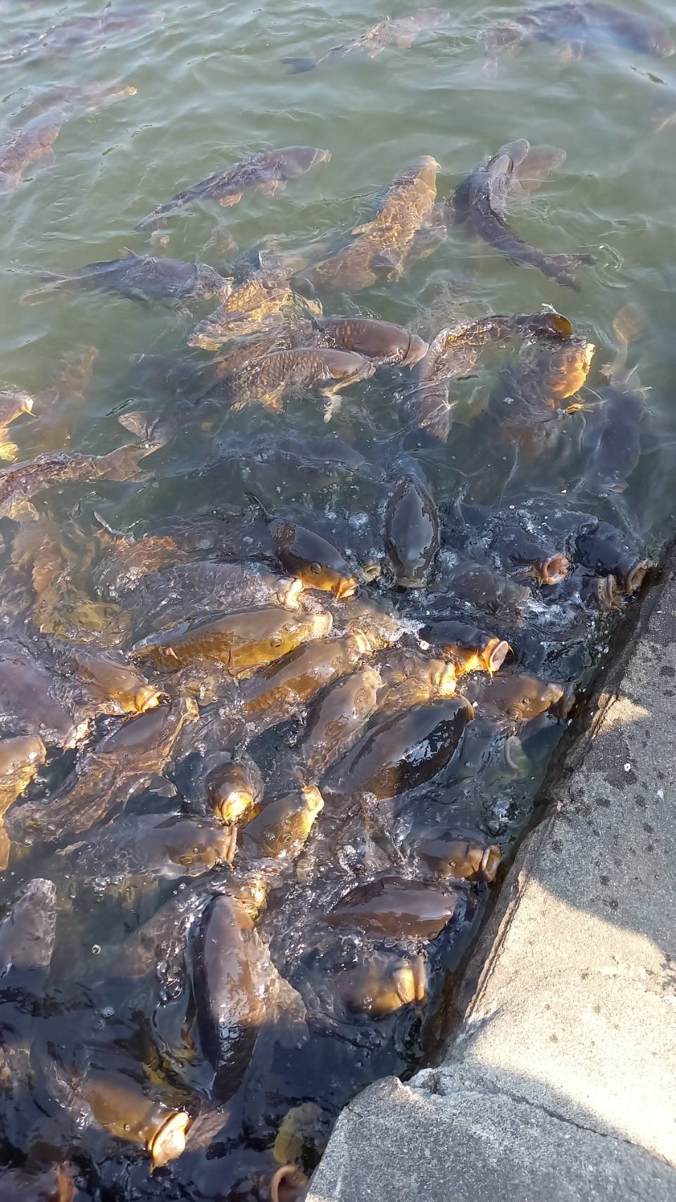 えびせんをあげたらうじゃうじゃ集まってきたー