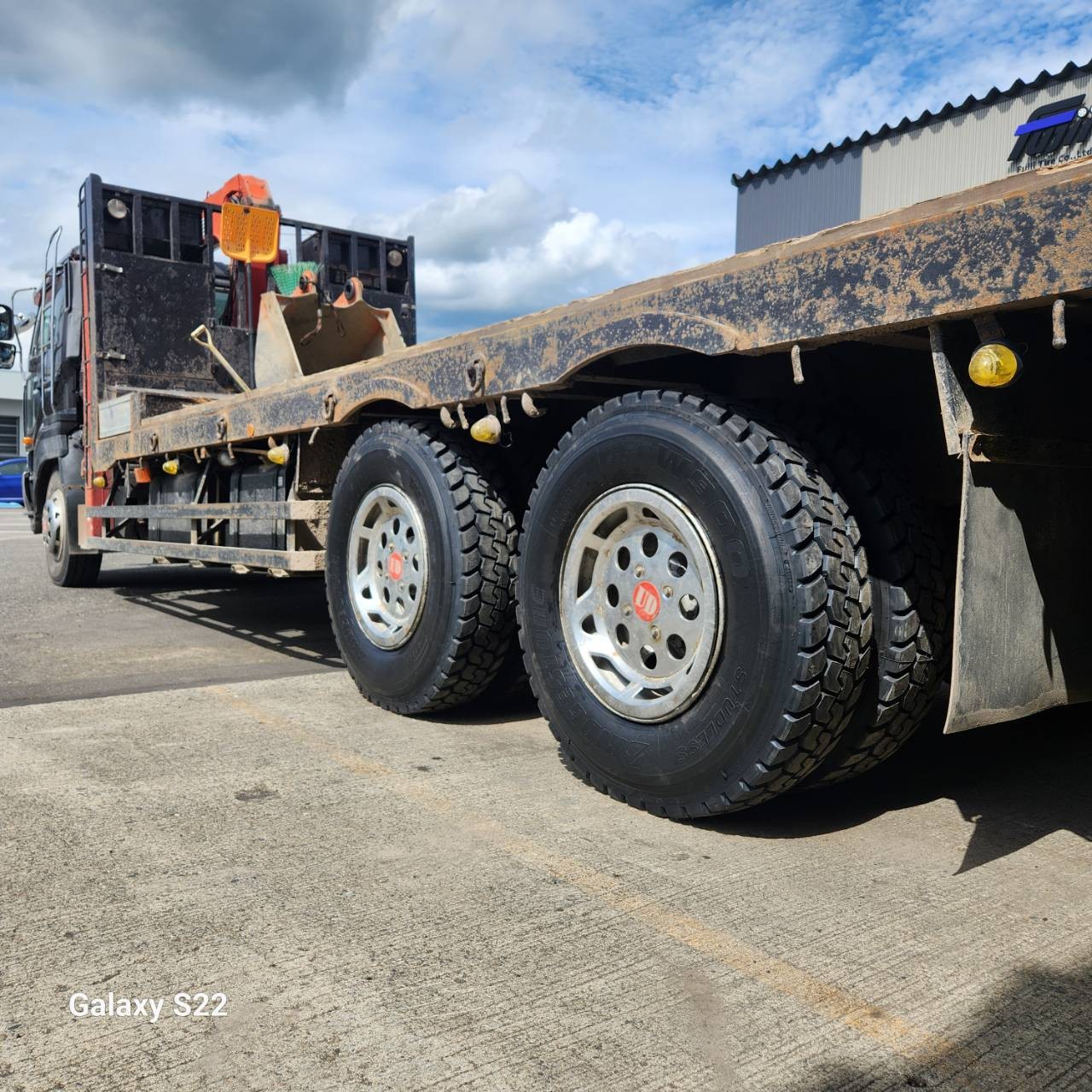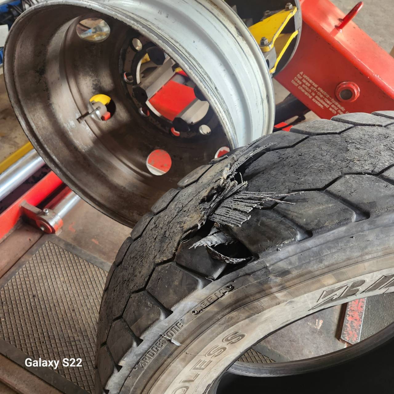 今日の作業は、タイヤがバーストしたトラックの交換作業です!