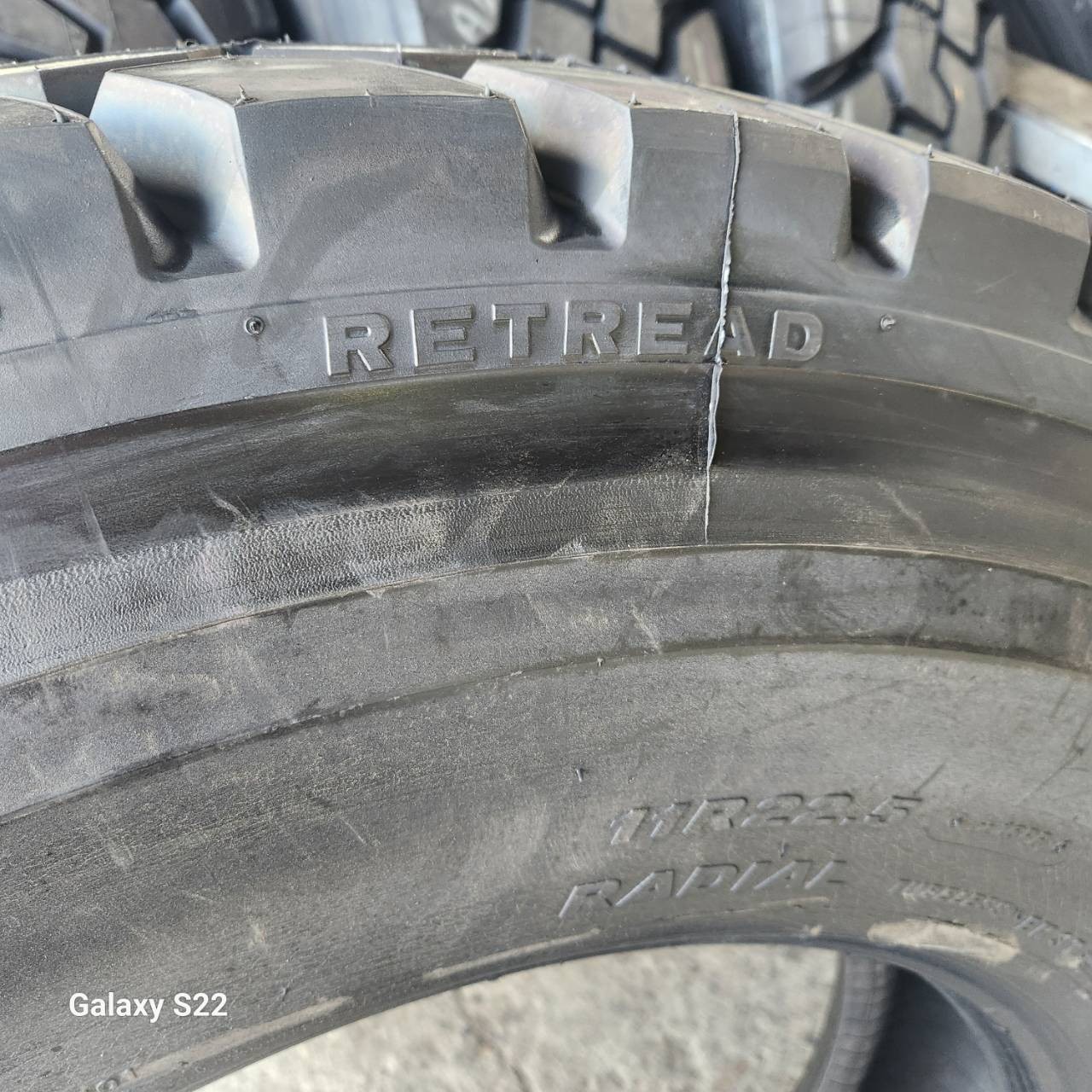 タイヤ側面に“RETREAD”と刻印が有ります。