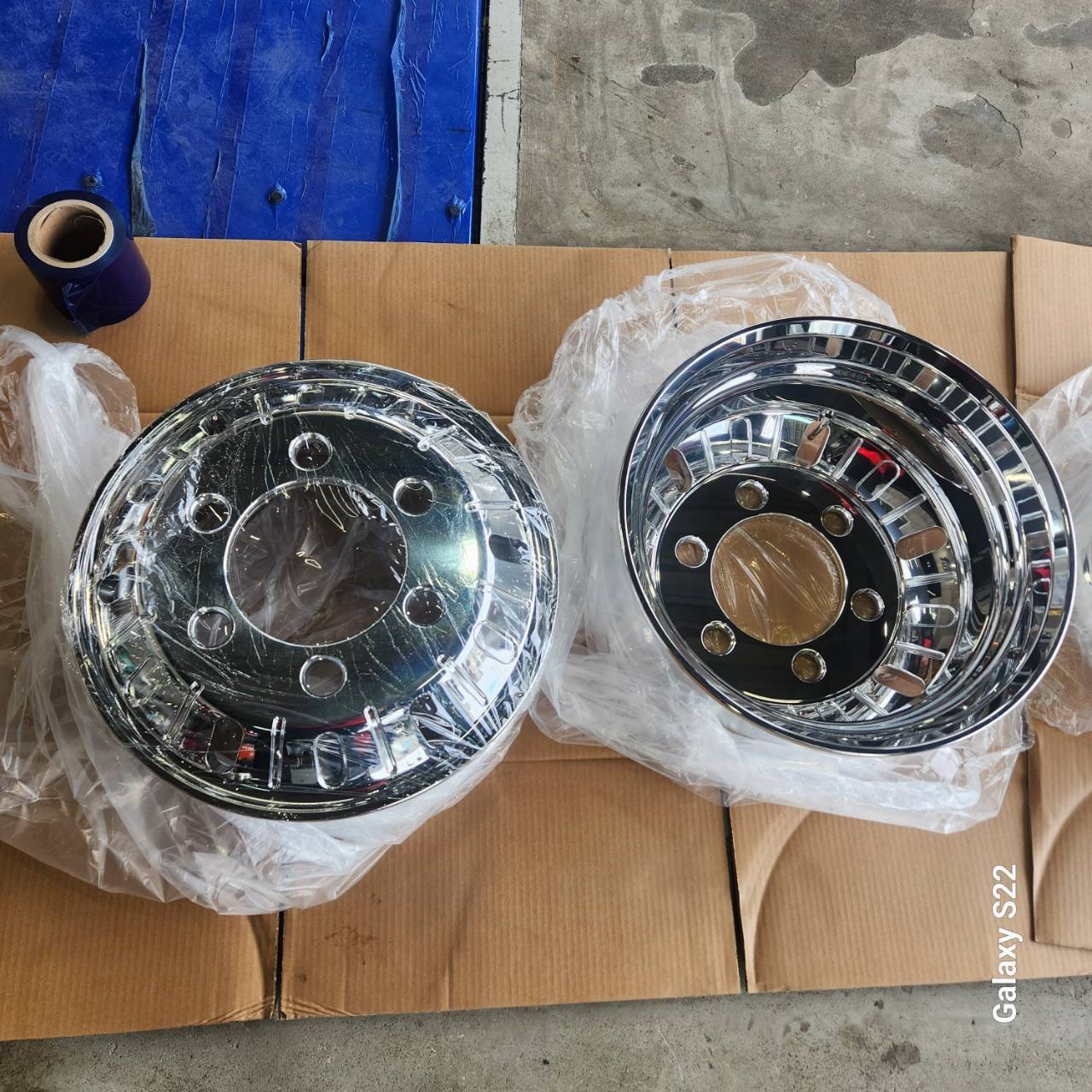 今日の作業は、搬送車のアルミホイールが入荷したので