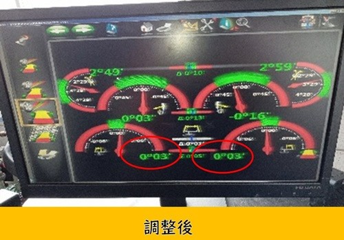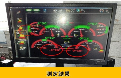 左フロントが外側に向いており、右フロントが内側に強く入っています