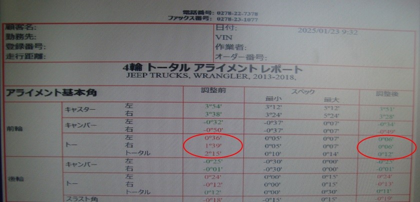 2025年1月24日クライスラー Jeep ラングラー その他 タイヤ・ホイール関連 > アライメント調整