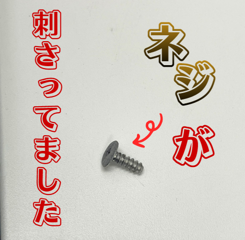 ネジが刺さっていました!(バタバタしていて刺さっていた画像ありません(´;ω;`))