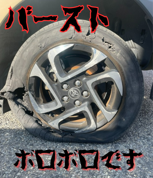 バーストでタイヤがボロボロに...(ノД`)・゜・。
