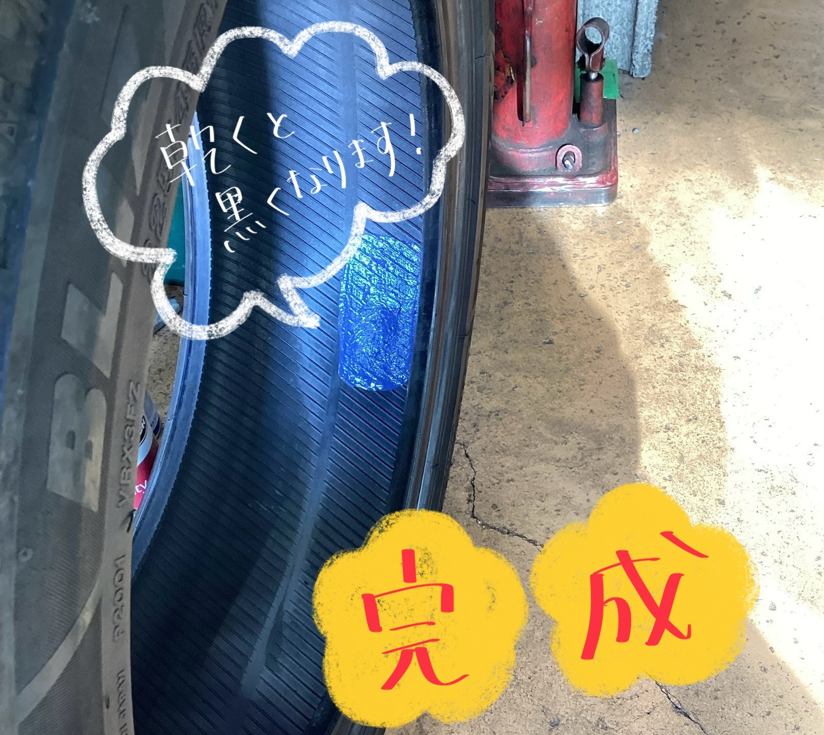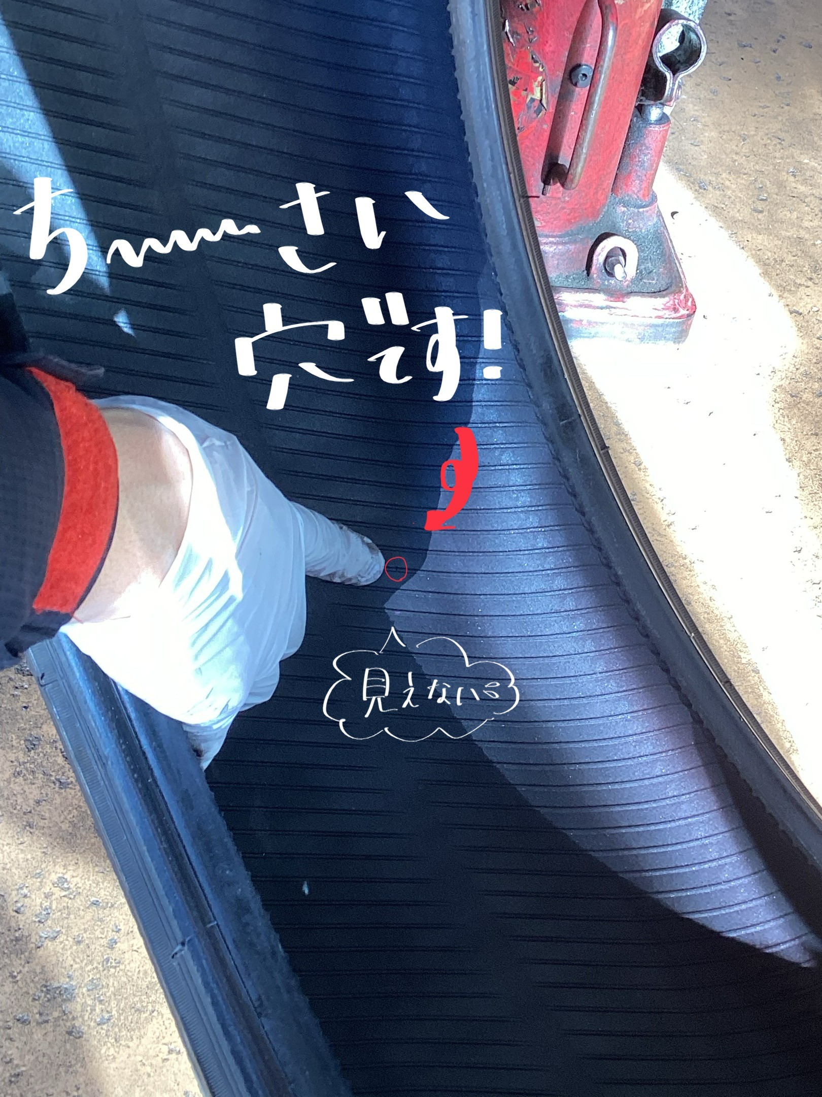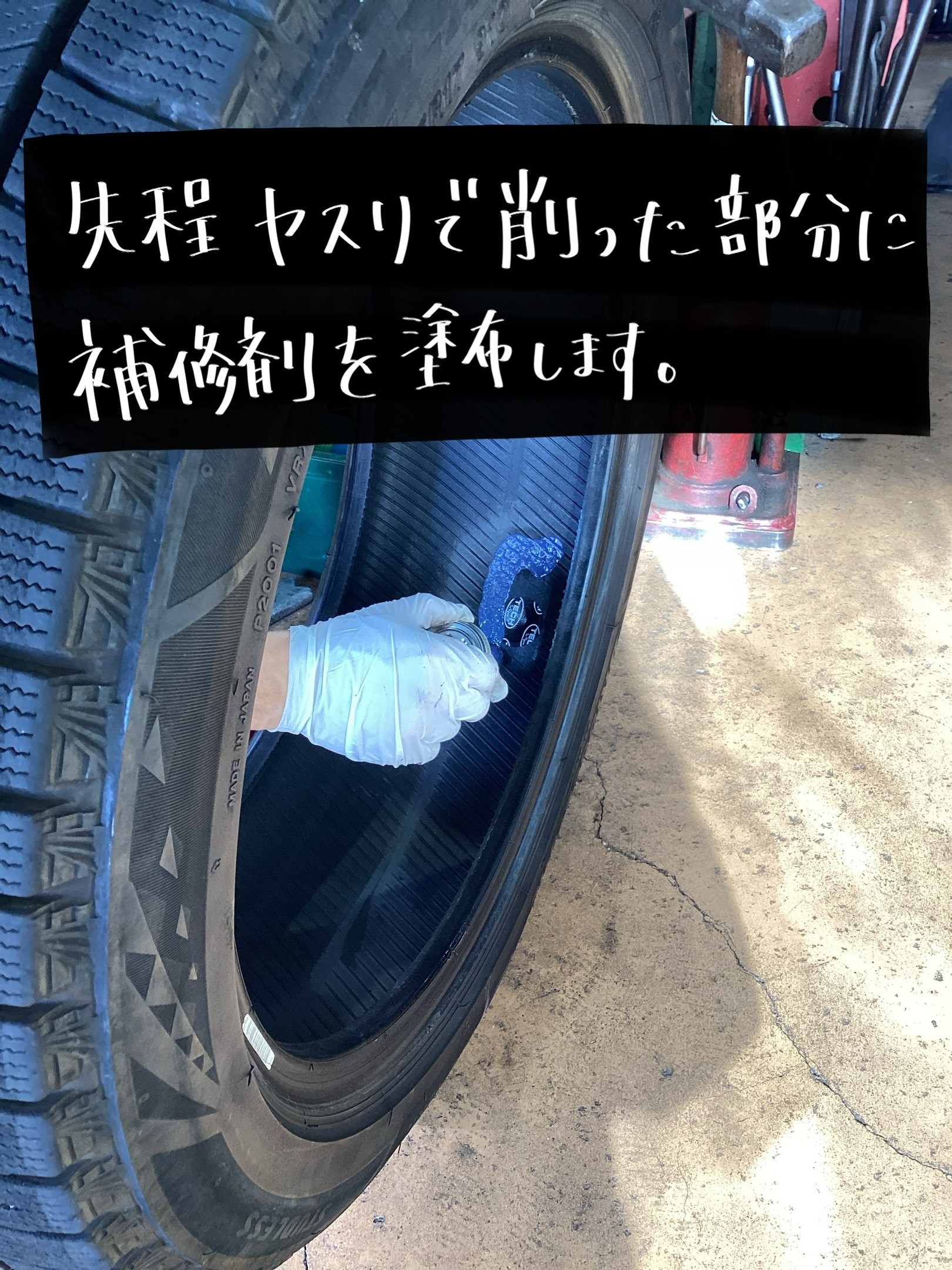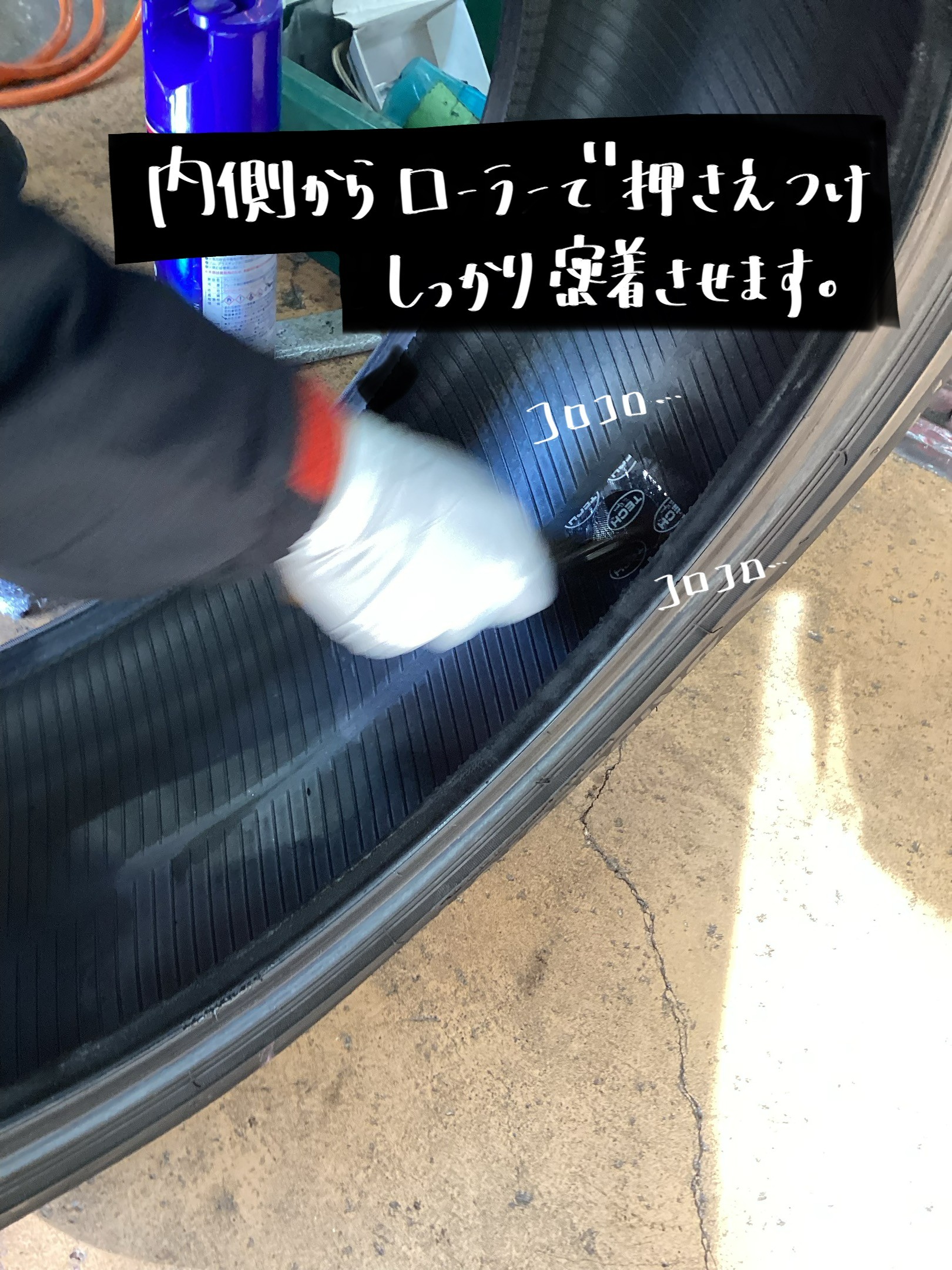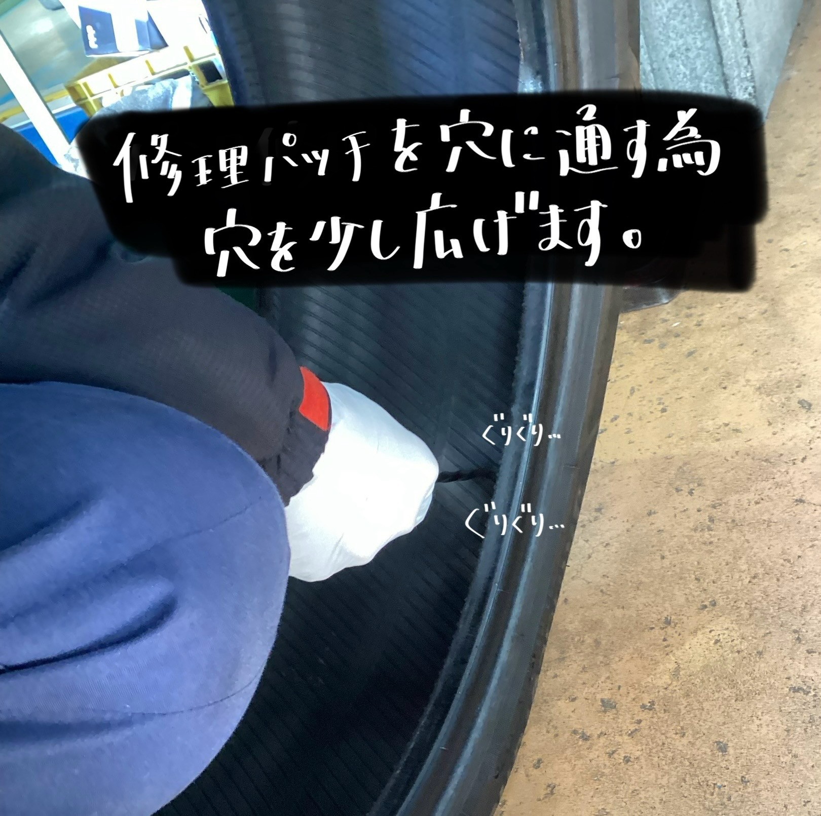 内側からパンク修理をします!!